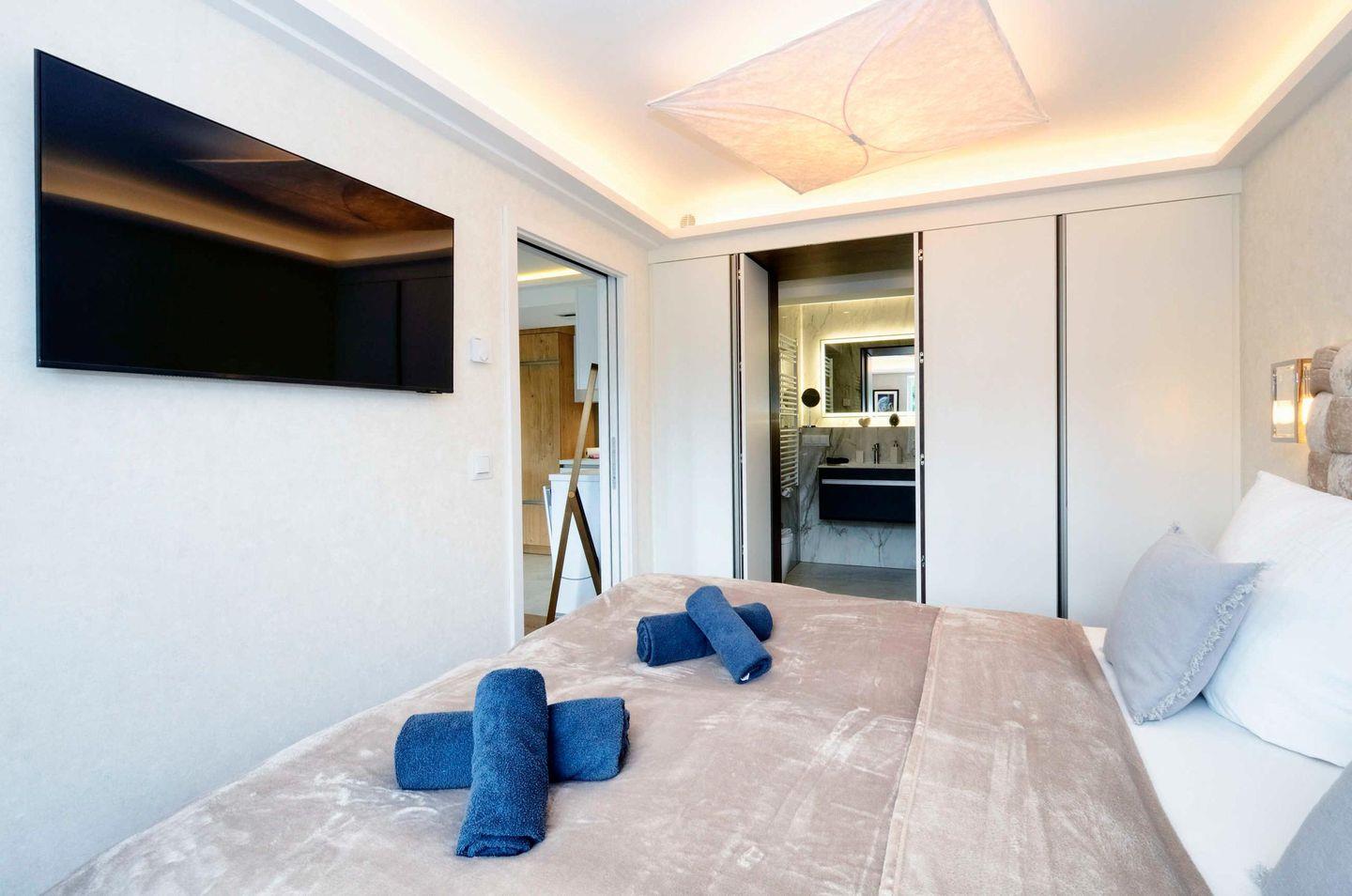 Die Ferienwohnung Unik bietet Platz für bis zu 4 Personen und ist mit einem Balkon ausgestattet, der einen herrlichen Blick Richtung Meer bietet. Die hochwertige Ausstattung der Wohnung lässt keine Wünsche offen. Die beiden Schlafzimmer sind jeweils mit einem Doppelbett ausgestattet und bieten somit ausreichend Platz für eine erholsame Nacht. Beide Badezimmer verfügen über eine Regendusche und eines davon ist zudem mit einer Sauna und einem Bidet ausgestattet.