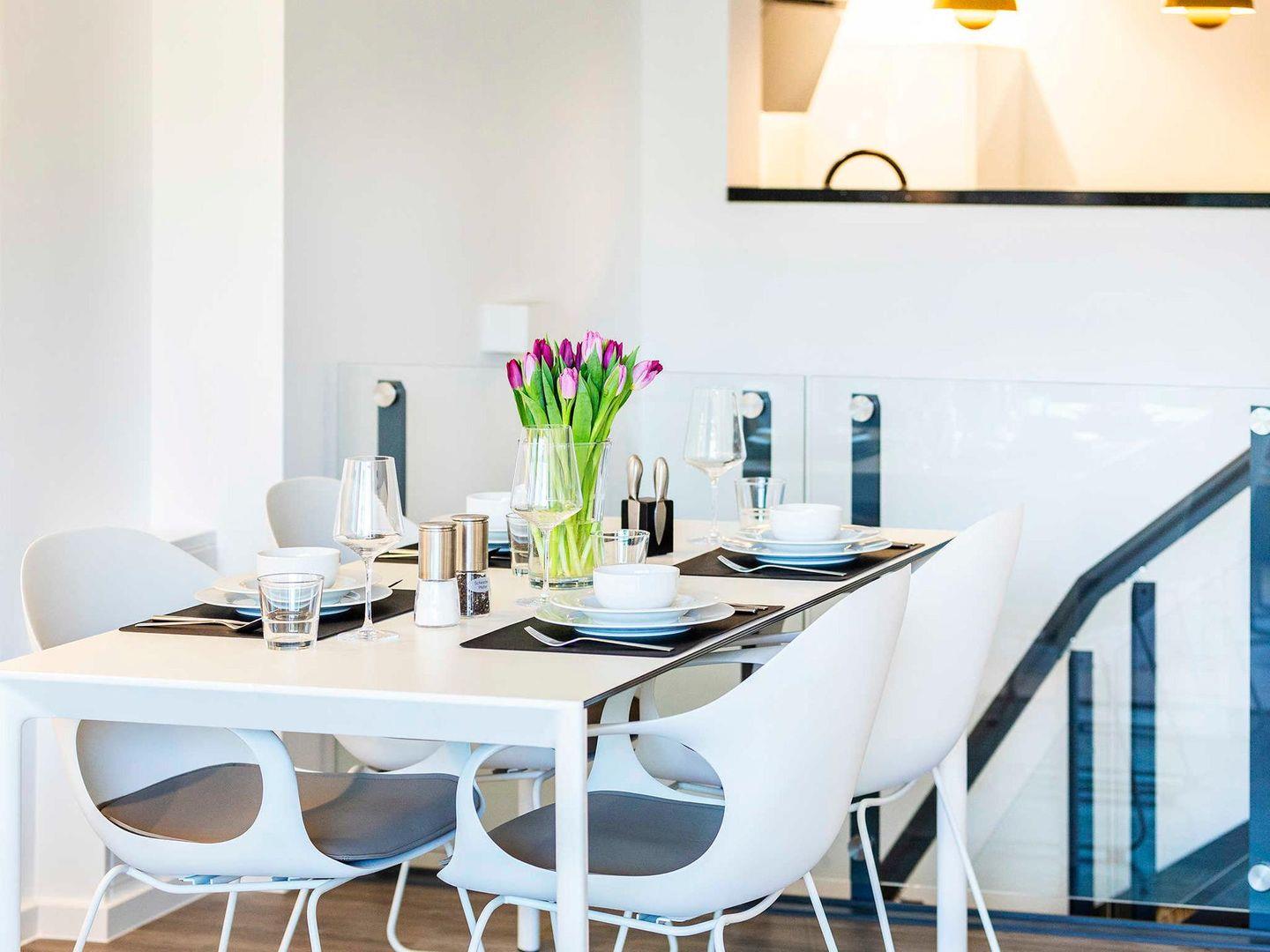 Schon wenn Sie in die 96 m² große Wohnung eintreten, fühlen Sie sich wie im Urlaub. Sie werden gleich von einer modernen, sehr hochwertigen Küche, mit kleinem Tresen und 2 Barstühlen, in Empfang genommen.