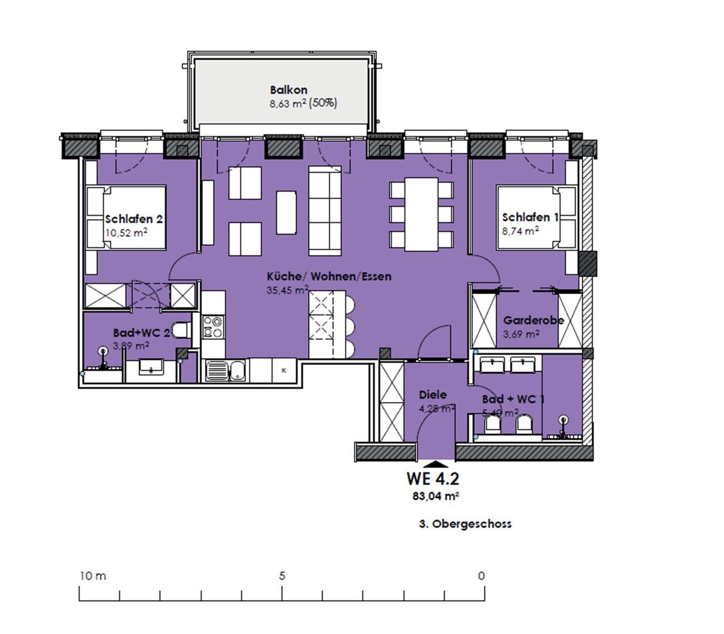 - Wohn/Essbereich: TV, Zugang zum Balkon