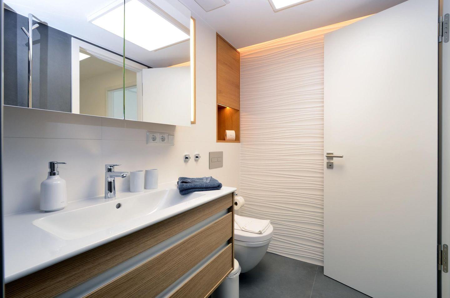 - Badezimmer: Regendusche, WC, Haartrockner, beleuchtete Badespiegel