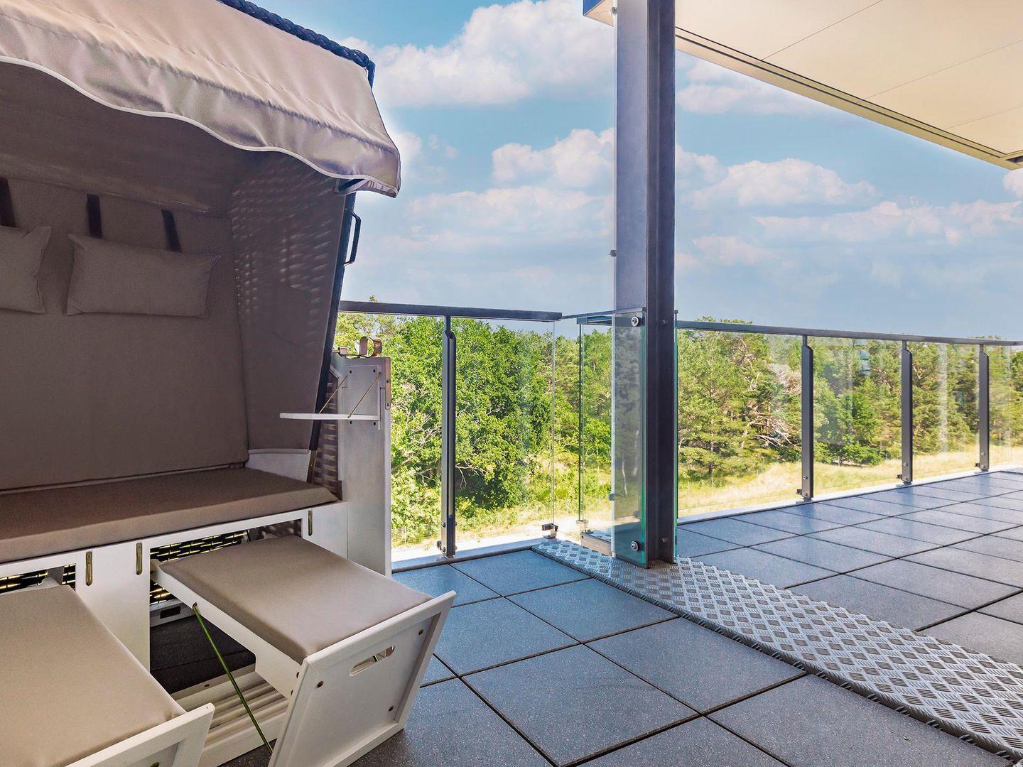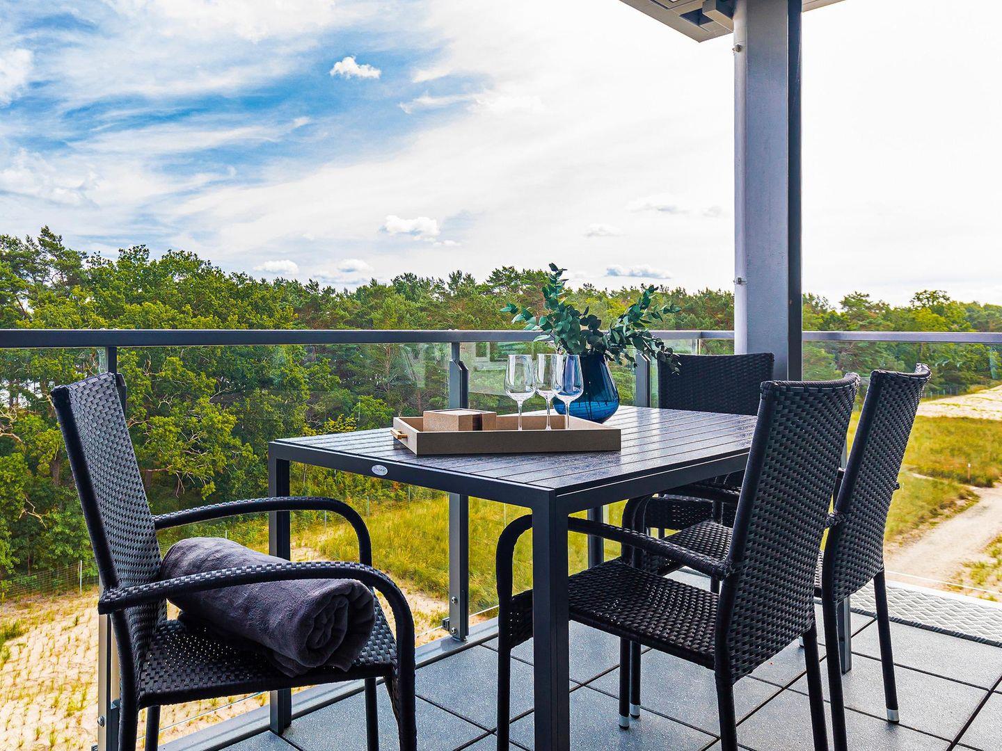 - Balkon 2: Sitzmöglichkeit, Blick auf das Meer
