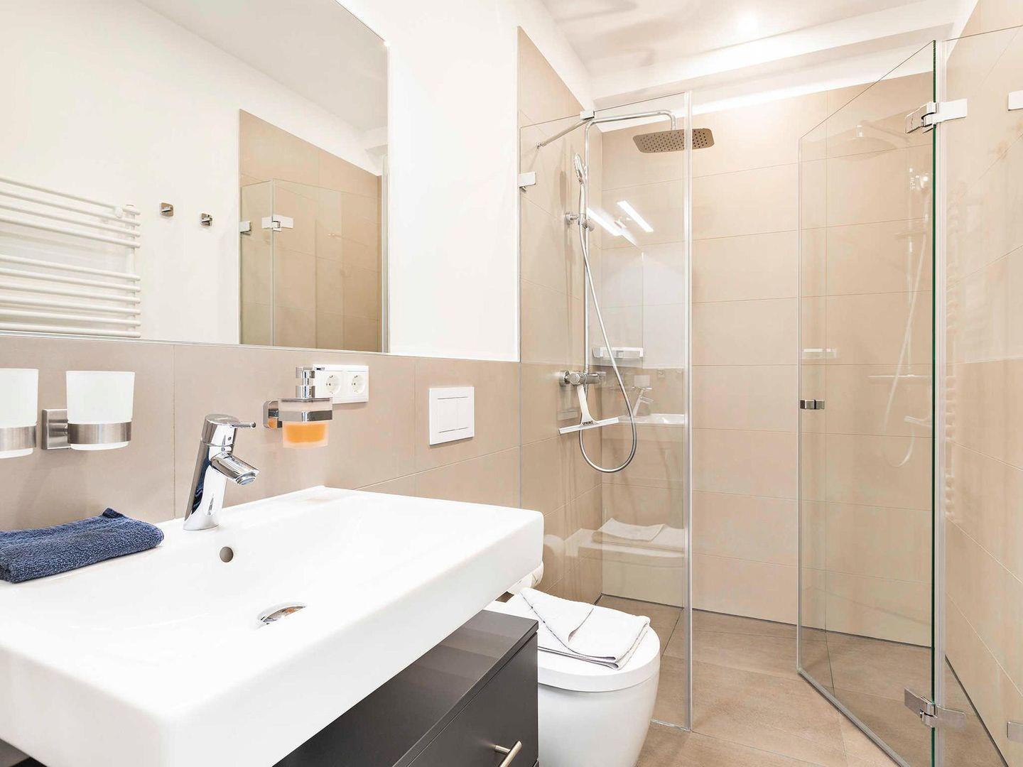 - Badezimmer 1: Regendusche, WC, Handtuchheizer