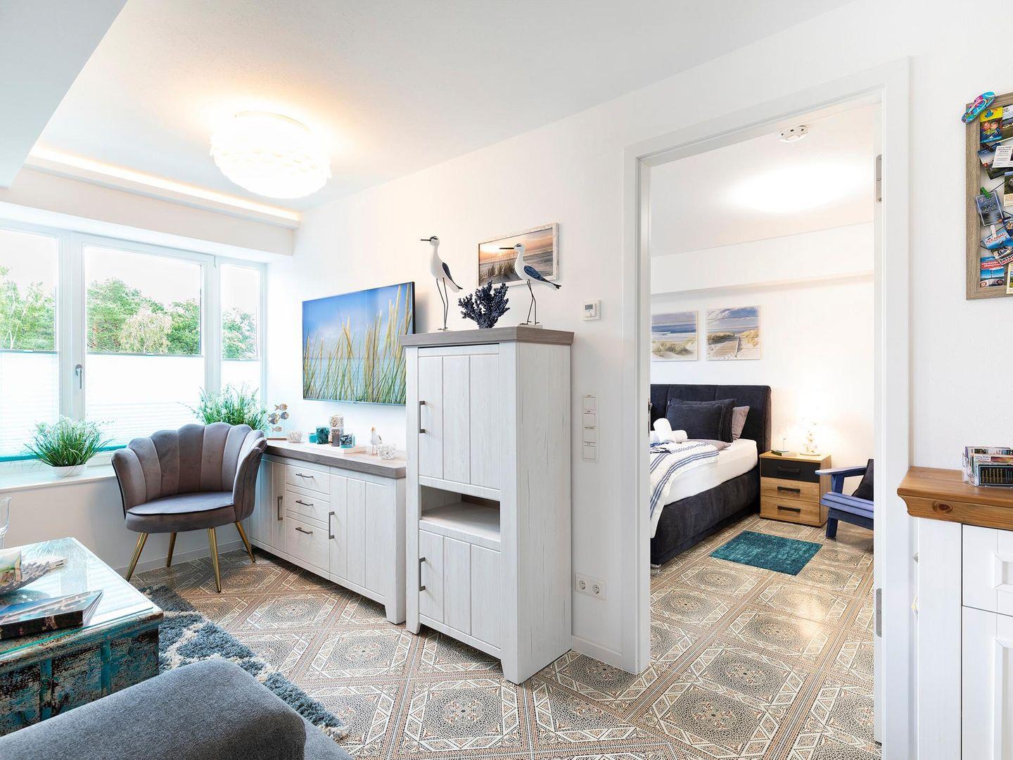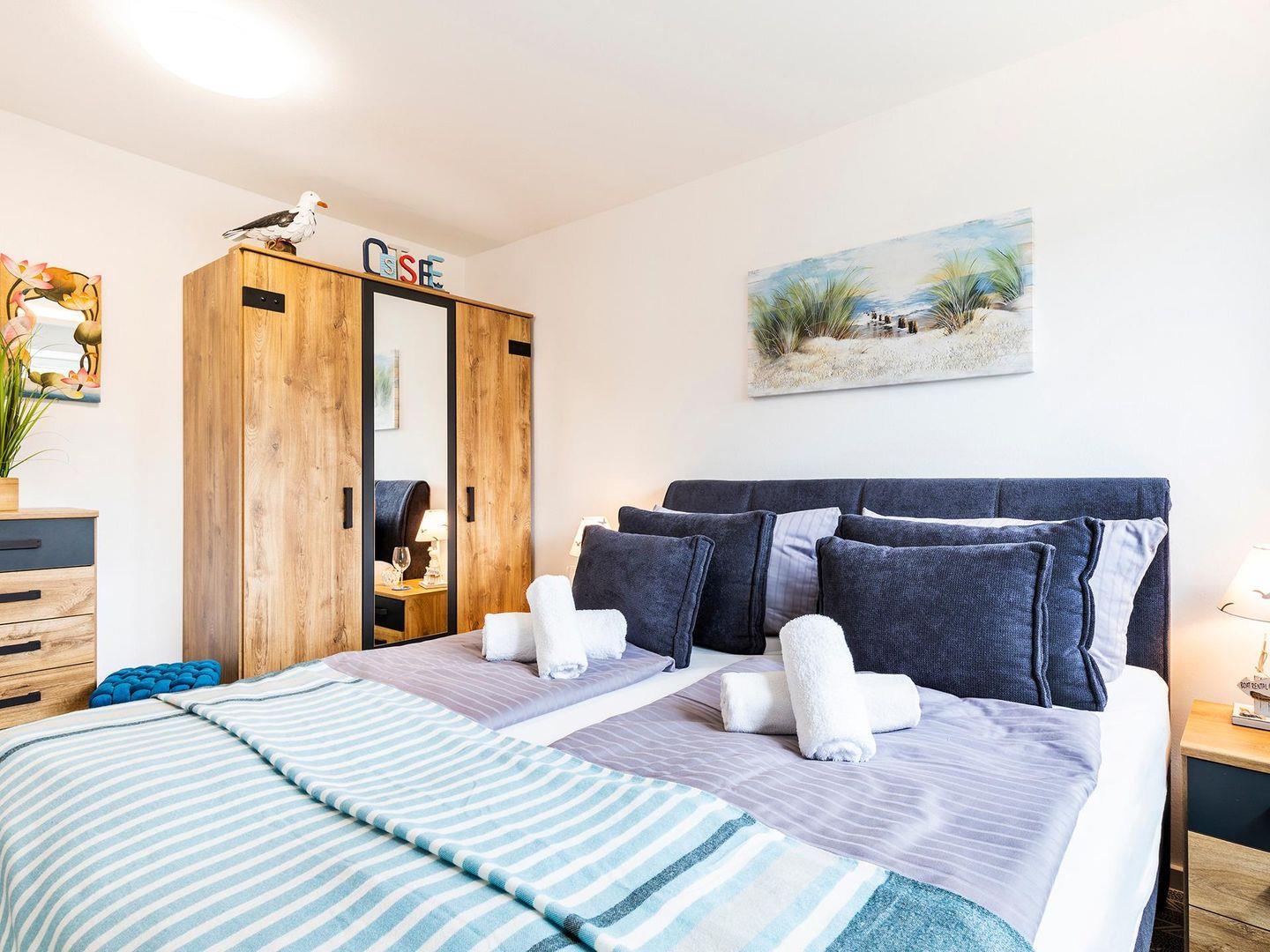 FeWo Strandmuschel: Stilvolle 82m² Wohnung mit Balkon, Meerblick, Strandkorb