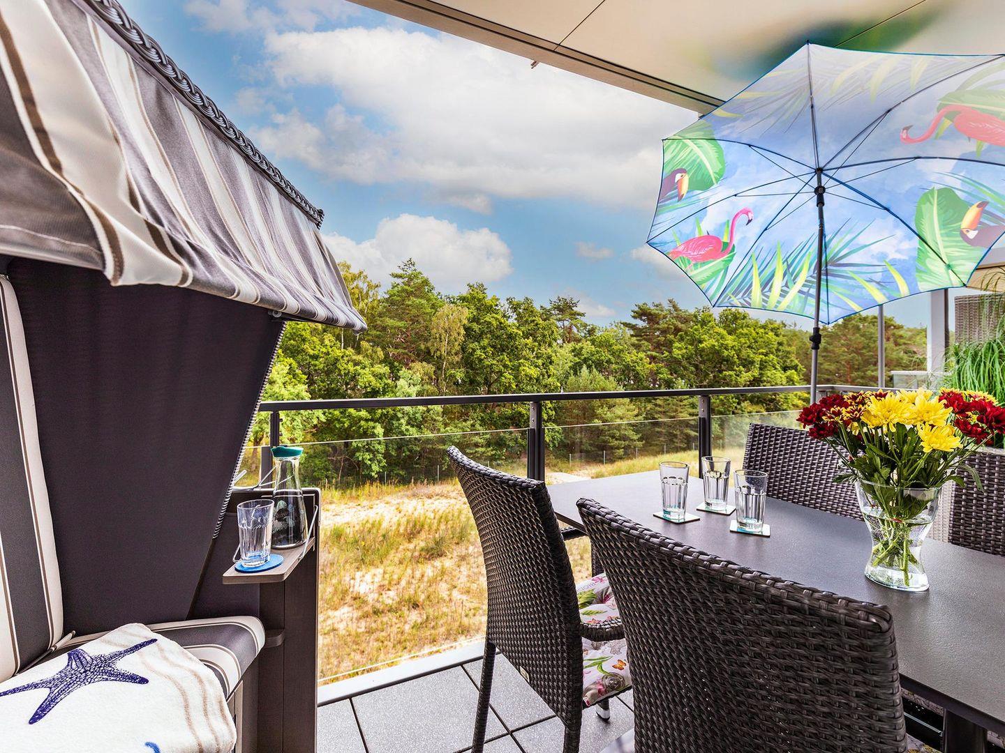 - Sonnenschirm auf dem Balkon, Strandkorb am Strand von Ende Mai bis September