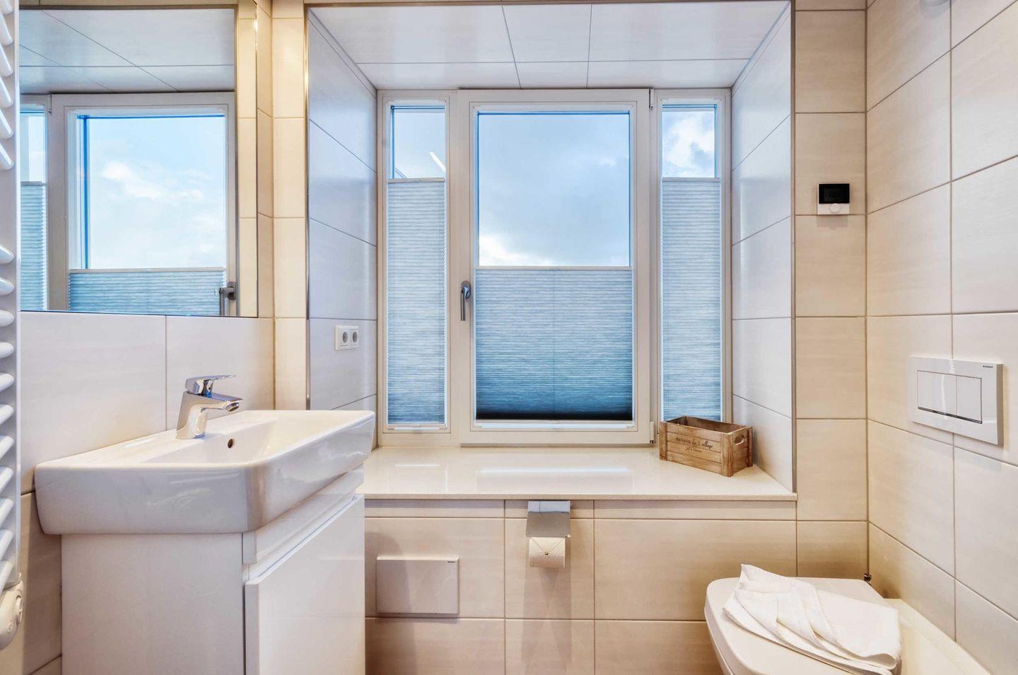 Im dritten Obergeschoss gelegen, bequem mit dem Fahrstuhl zu erreichen, bietet dieses Apartment Platz für bis zu 4 Personen. Warme klare Farben laden Sie ein, sich hier wohl zu fühlen. In der Diele können Sie Ihre Koffer abstellen und schnell die Wohnung inspizieren. Auf dem Balkon angekommen können Sie den Ausblick zum Wasser mit der Dünung und den Bäumen dazwischen genießen.
