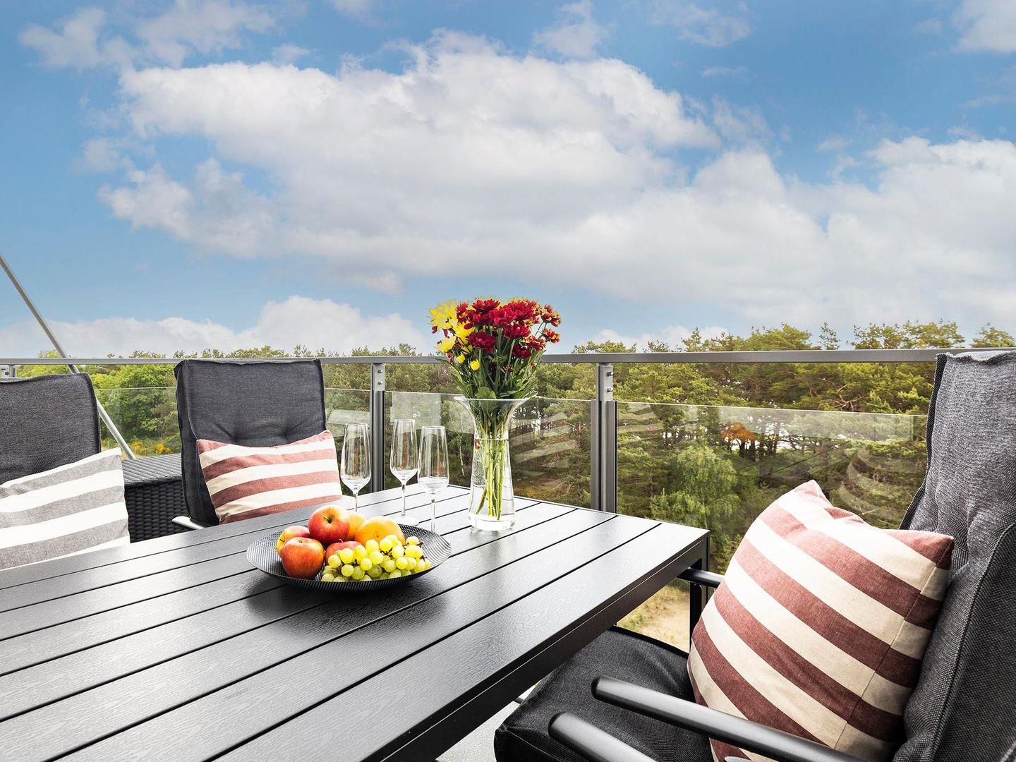 - Balkon mit Sitzmöglichkeiten, Blick Richtung Meer