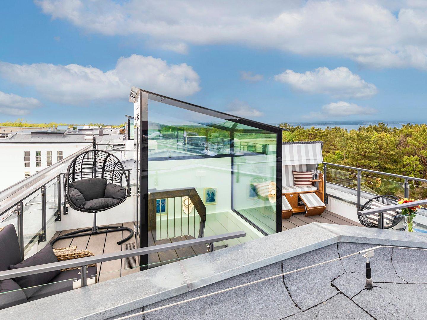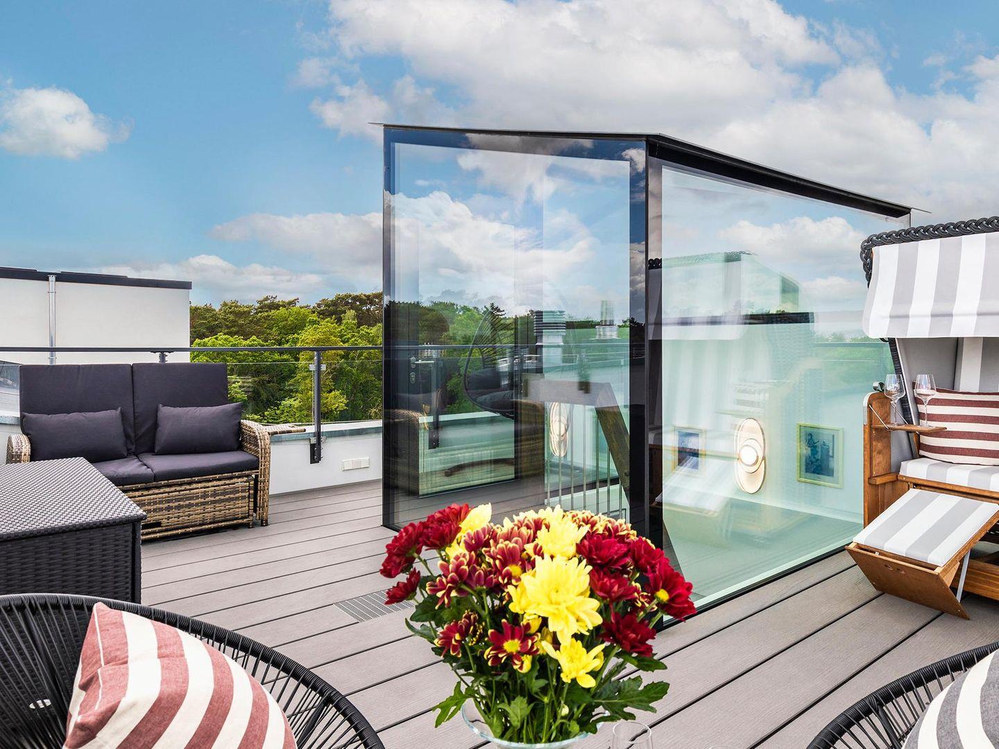 - Strandkorb und Schaukel auf der Dachterrasse
