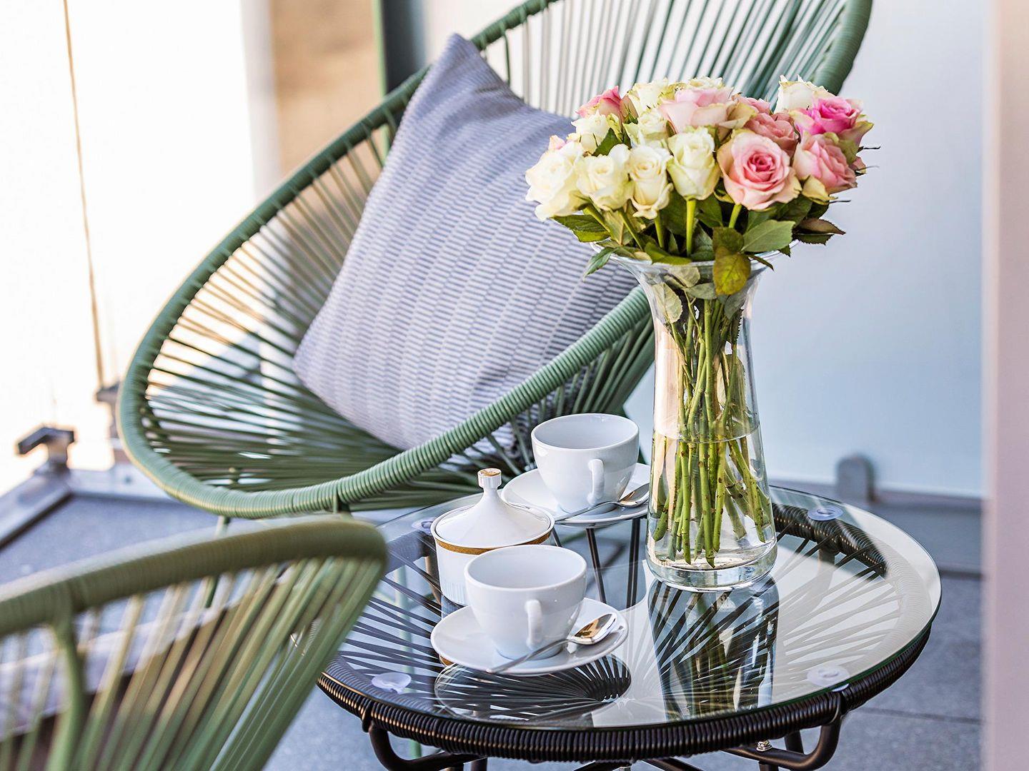 - Balkon 2: Tisch und 4 Stühlen, Blick Richtung Meer