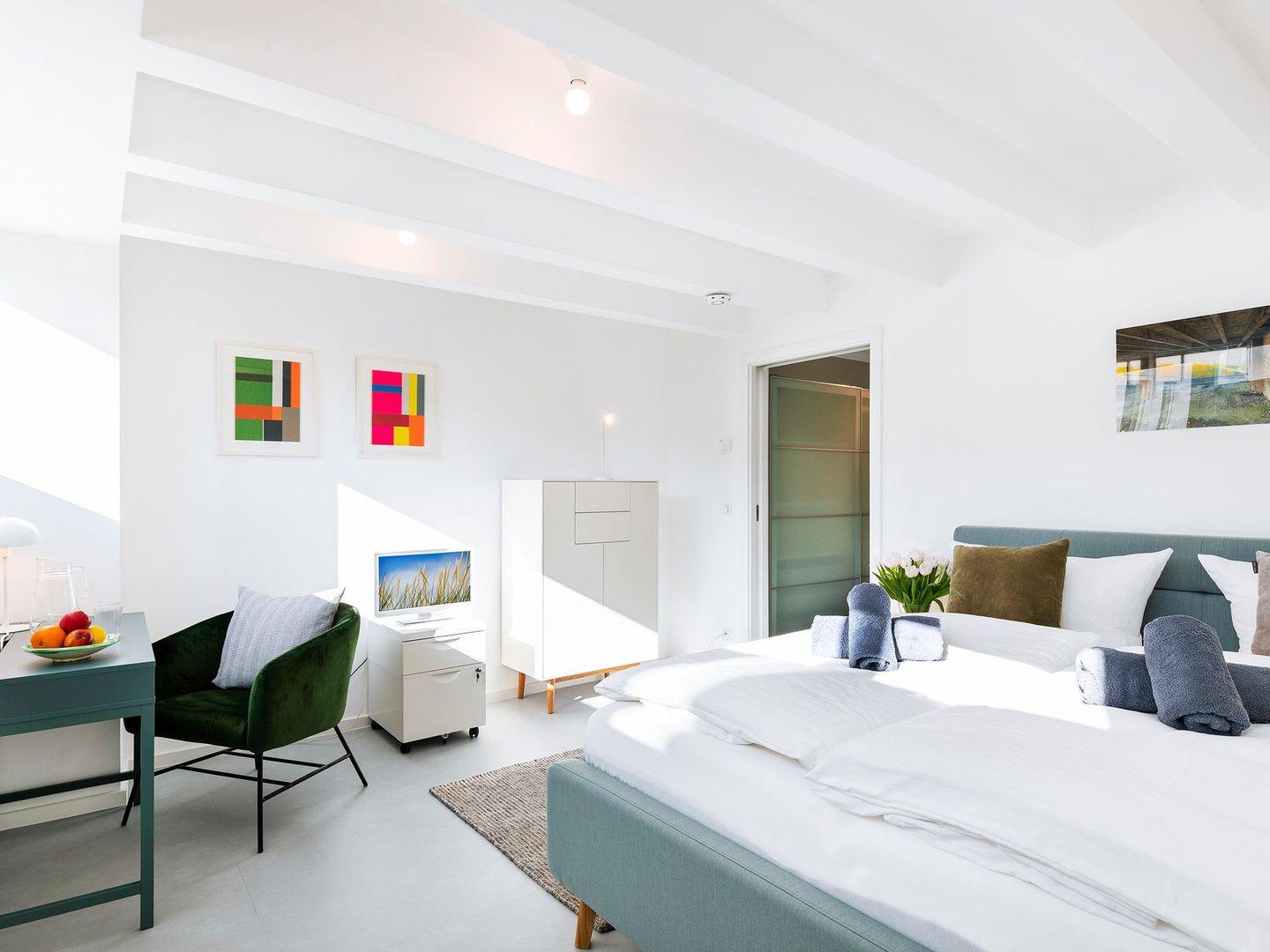 Wir haben die Wohnung mit hochwertigen Möbeln und einem Sinn für Harmonie und Farbe so eingerichtet, als ob wir selber dort sesshaft wären. Die Wände sind liebevoll mit kreativen Bildern von befreundeten Künstlern geschmückt. Wir fühlen uns an diesem Ort sehr wohl und hoffen, dass Sie es uns gleichtun werden.