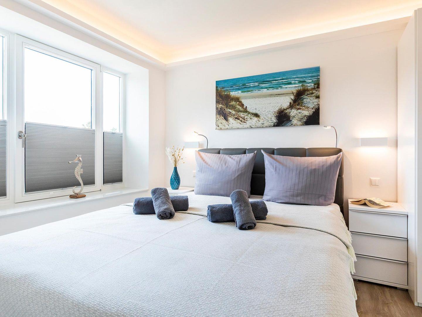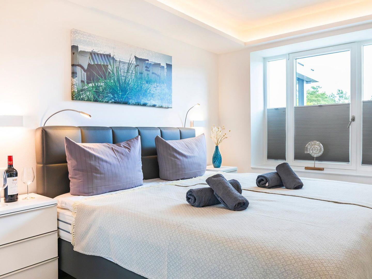 In der gemütlichen Wohnung, mit W-Lan und Meerblick, stehen Ihnen für Ihren Schlafkomfort zwei Schlafzimmer mit jeweils einem Boxspringbett für 2 Personen zur Verfügung und im Wohnzimmer ist eine Aufbettung für zwei weitere Personen möglich. Der zentrale Wohn-Essbereich bietet ausreichend Platz für vier bis sechs Personen am großen Esstisch, sowie auf der bequemen Couch. Der meerseitige Balkon verfügt über 2 Tische und 6 Stühle, die ebenfalls zum Verweilen oder gemeinsamen Essen einladen, dass Sie in der vollausgestatteten Küche selbst zubereiten können.