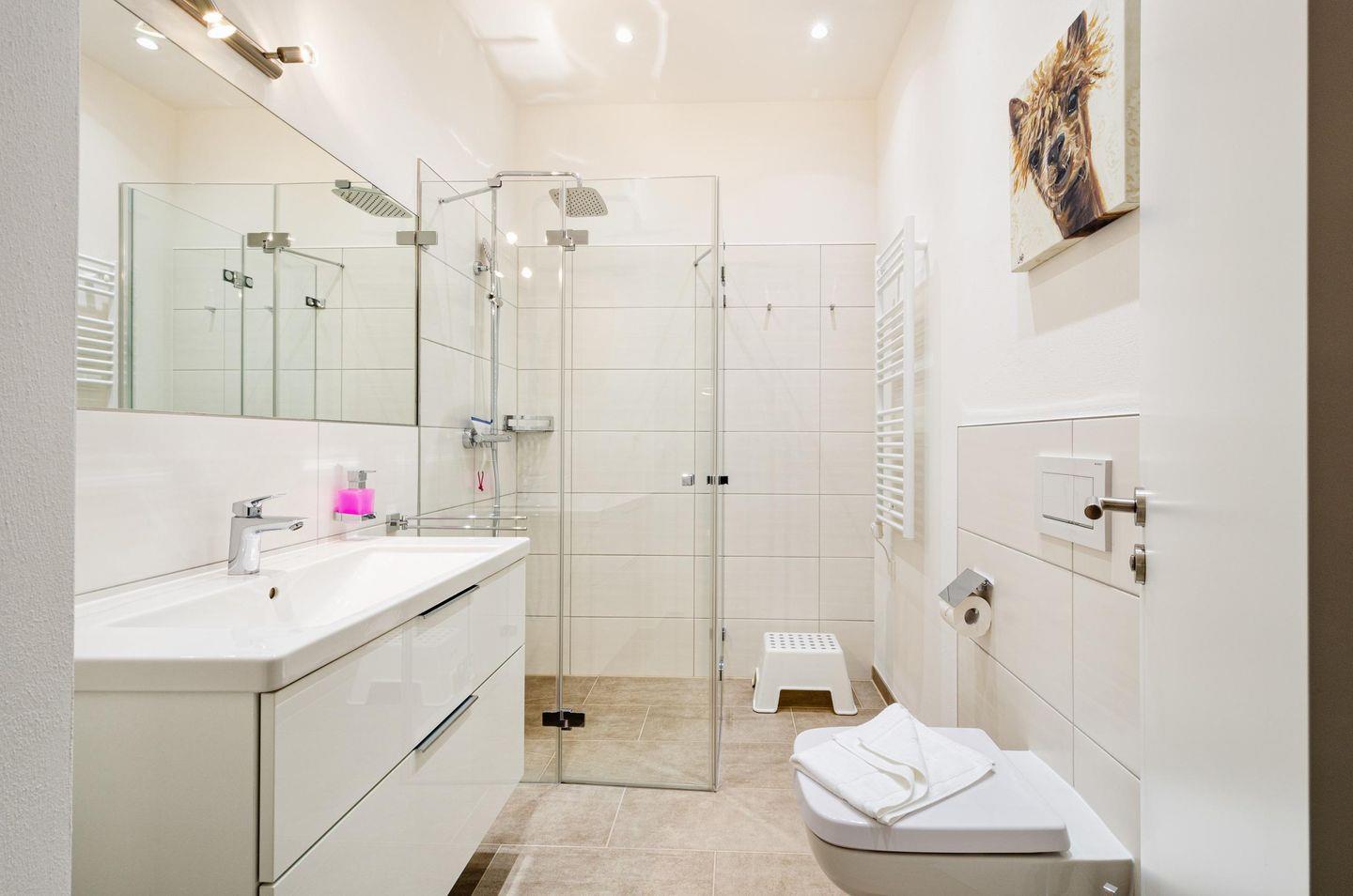- Badezimmer: Regendusche, Haartrockner, WC