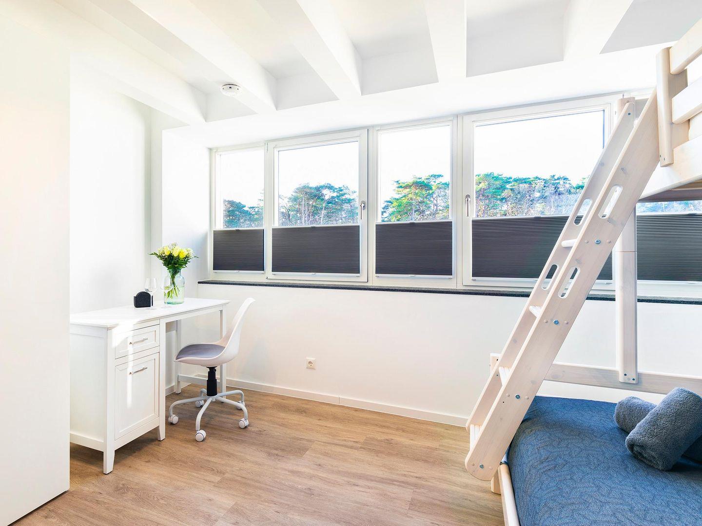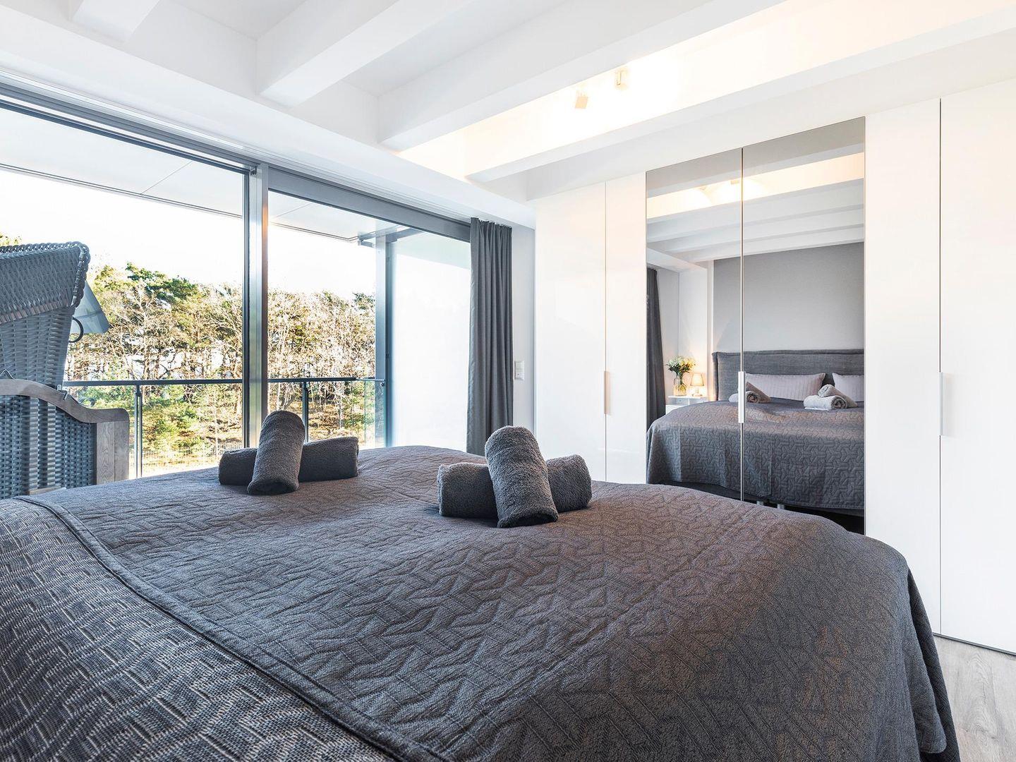 - Schlafzimmer 1: Doppelbett (180 x 200), Insektenschutz, Balkon mit Strandkorb, Ostseeblick
