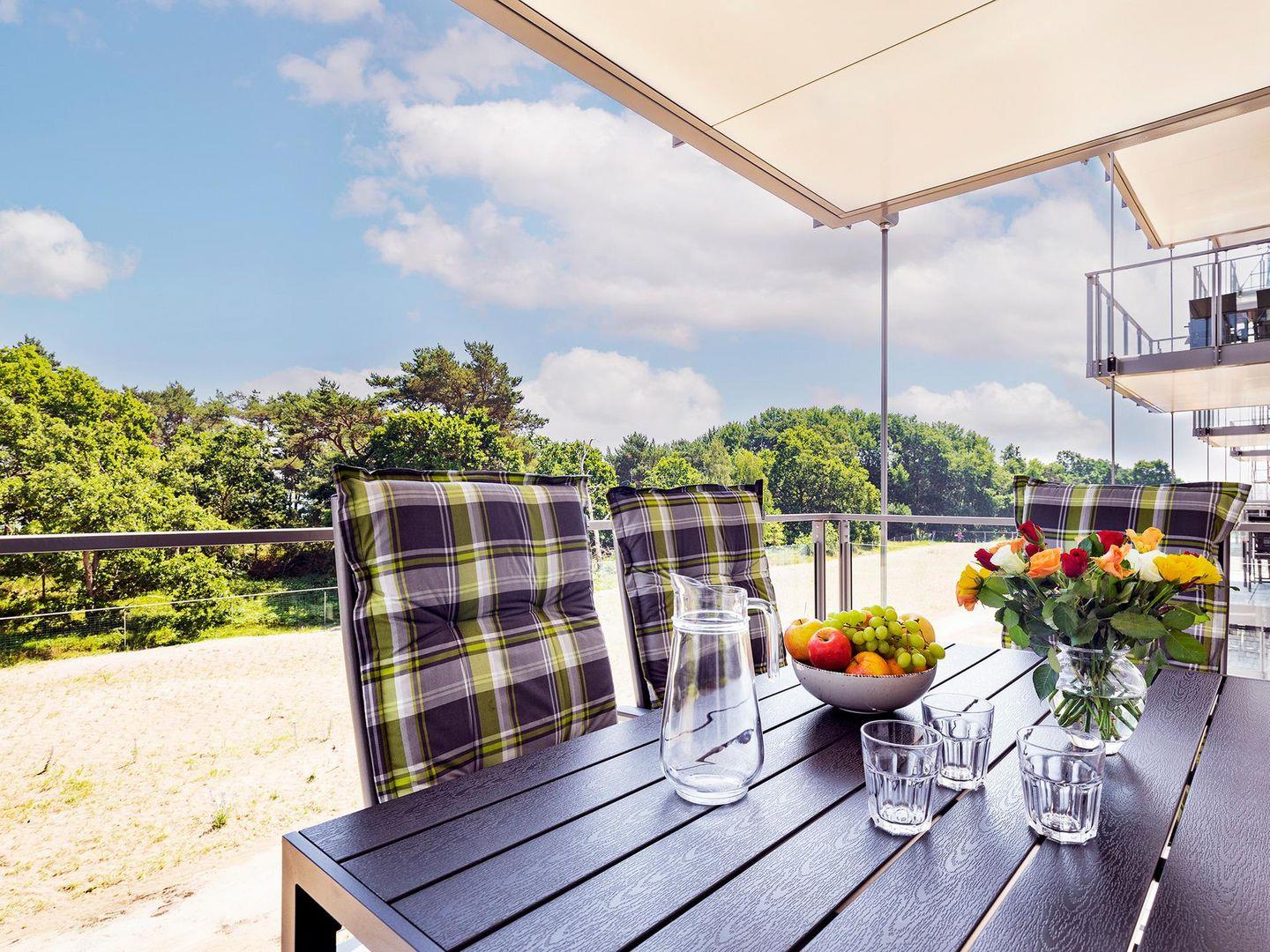 - Balkon: Sitzmöglichkeit für 4 Personen, Blick Richtung Meer und Küstenwald