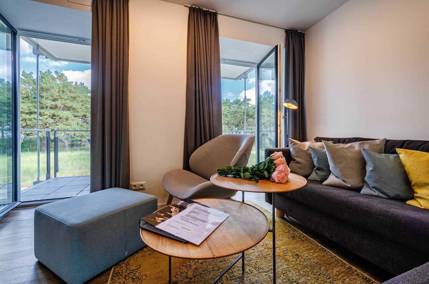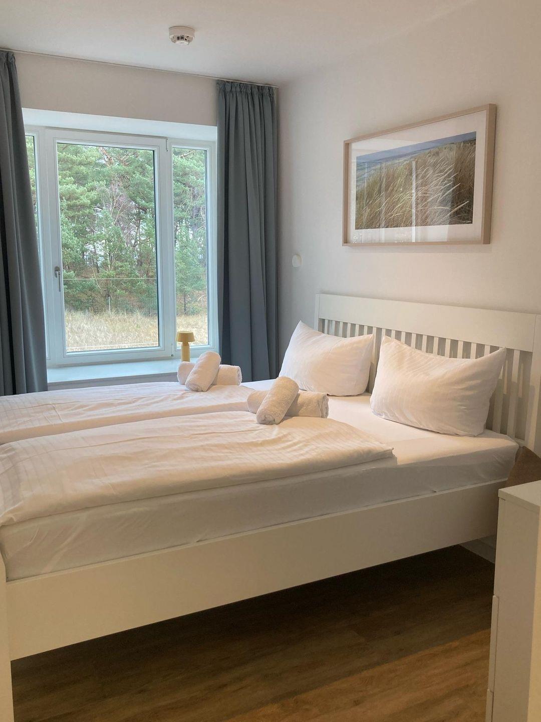 Im Haus Arkona erwartet dich eine großzügige Ferienwohnung nur 50 m vom Meer entfernt. Drei Schlafzimmer schenken Raum für Ruhe, der helle Wohnbereich führt auf einen Balkon mit Blick über Dünen und Küstenwald. Zwei Bäder, WLAN, warme Böden und Waschmöglichkeiten sorgen für Komfort. Am Parkplatz steht eine E-Ladestation bereit – und hoch oben im Haus öffnet die Sky-Sauna ihren weiten Blick über die Ostsee.