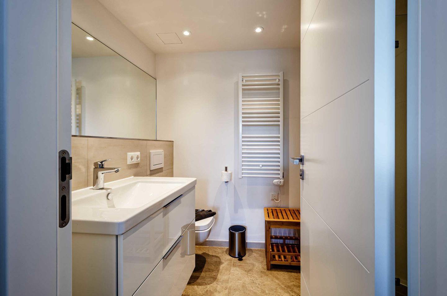 - Badezimmer: Regendusche, WC, Haartrockner
