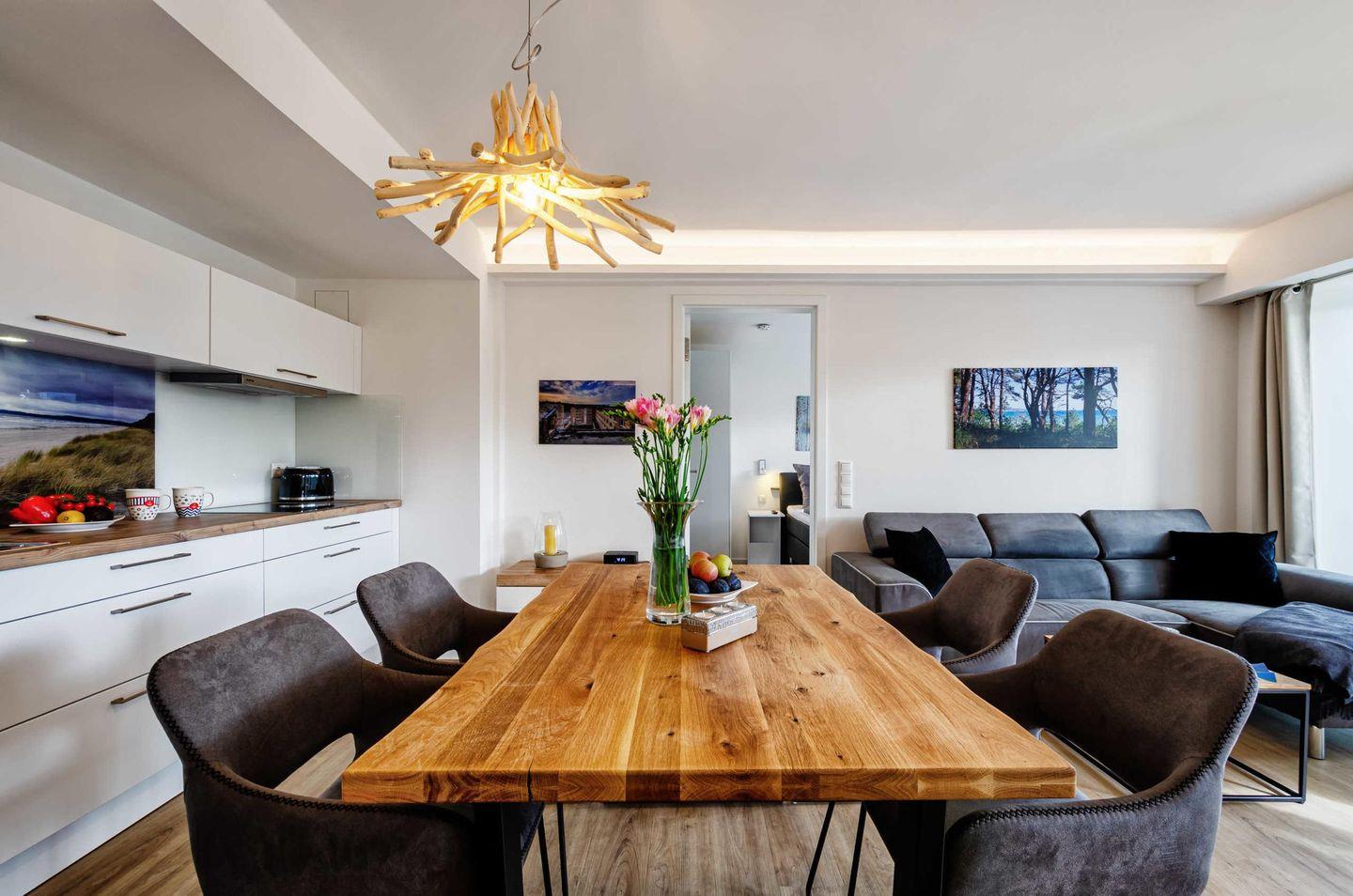 Wenn Sie die Sehnsucht nach Mee(h)r packt, dann sind Sie in der Ferienwohnung Se(e)hnsucht genau richtig. Ein Ausblick vom Balkon mit Blick zur Ostsee erfüllt das Herz und entspannt den Geist. Die Küche mit moderner Ausstattung und das gemütliche Wohnzimmer lädt Sie bei jedem Wetter ein, zu verweilen. Das Entertainment kommt auch hier nicht zu kurz, da das Apartment mit TV und W-Lan ausgestattet ist.