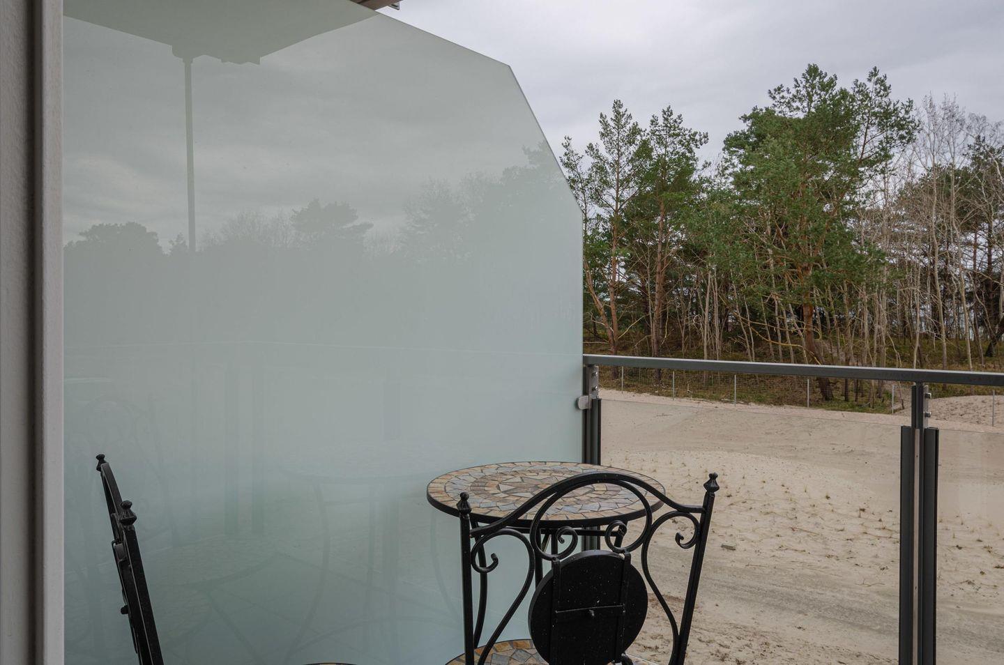 - Balkon mit Tisch und 2 Stühlen