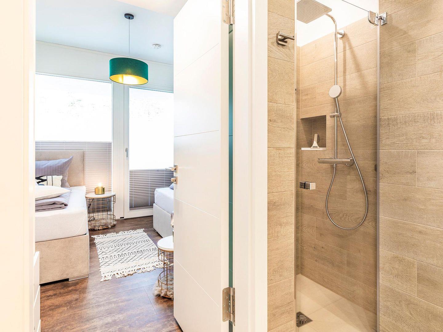 - Badezimmer 2: Regendusche, WC, Waschbecken, Haartrockner, Schminkspiegel mit Vergrößerung