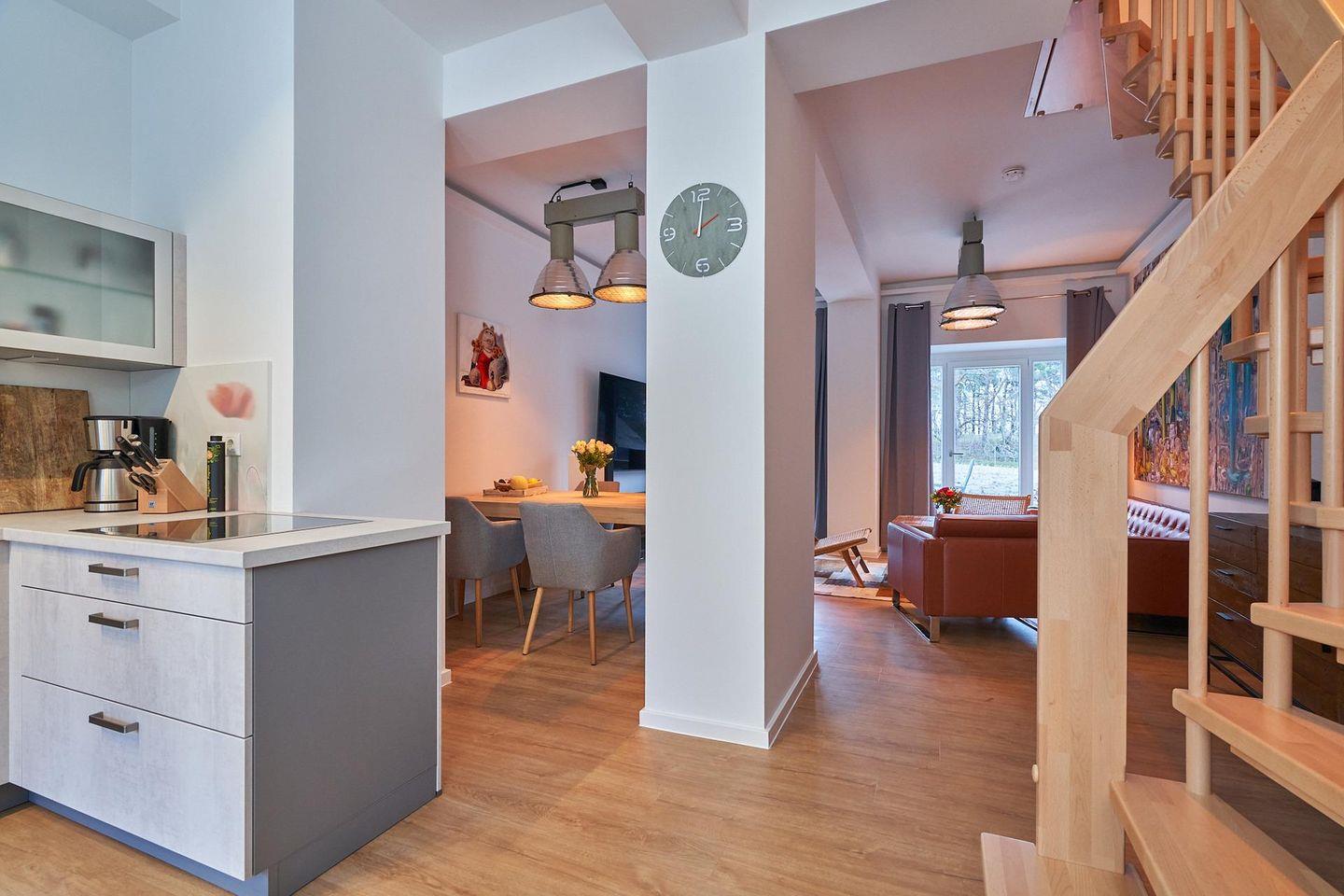 Im Haus Wittow erwartet dich eine helle Ferienwohnung nur 50 m vom Meer entfernt. Zwei Schlafzimmer – eines zur See, eines zum Land – schenken Ruhe, während der Wohnbereich zur Terrasse über den Dünen führt. WLAN, Streaming, warme Böden und eine voll ausgestattete Küche begleiten deinen Aufenthalt. Eine eigene Waschmaschine sorgt für Komfort, und der Weg zum Strand beginnt direkt vor der Tür.