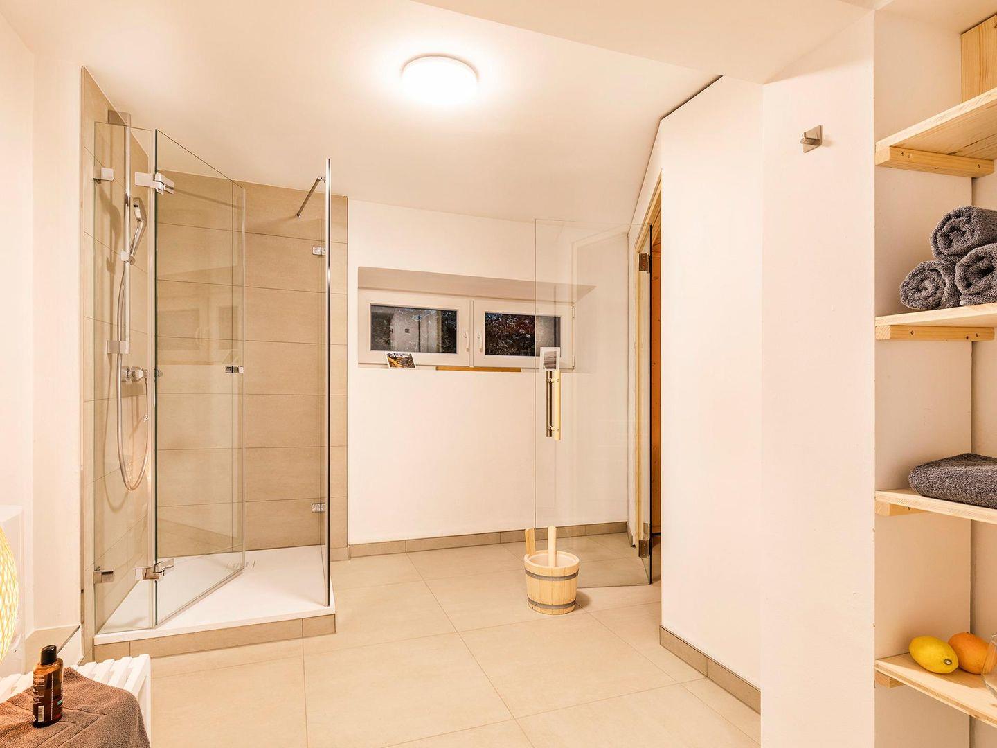 - Saunabereich mit Infrarotwärmestrahler und Dusche im Untergeschoss (innerhalb der Wohnung)