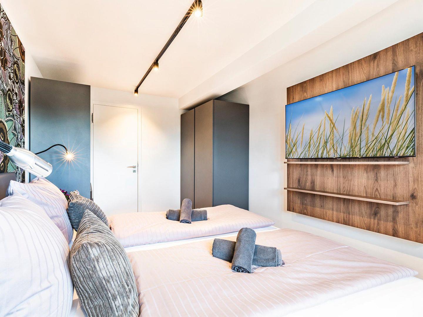 - Schlafzimmer 1: Doppelbett (180x200), Kleiderschrank, Smart-TV