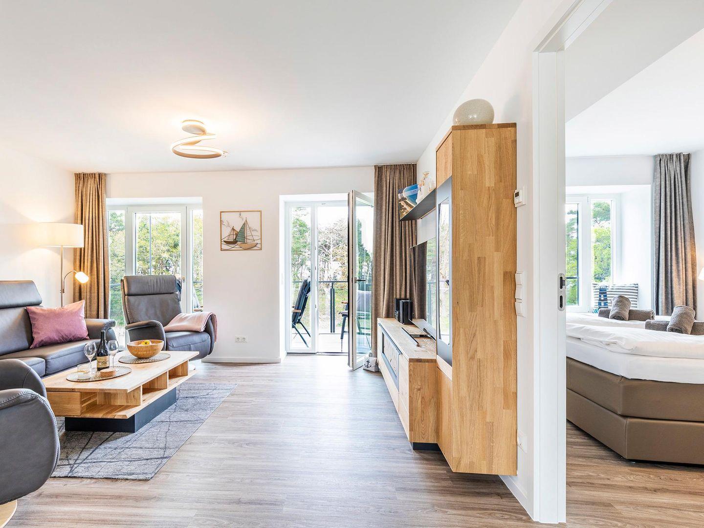 FeWo Küstenliebe: Modernes 90 m² Meerblick-Apartment mit Balkon – Haus Mönchgut