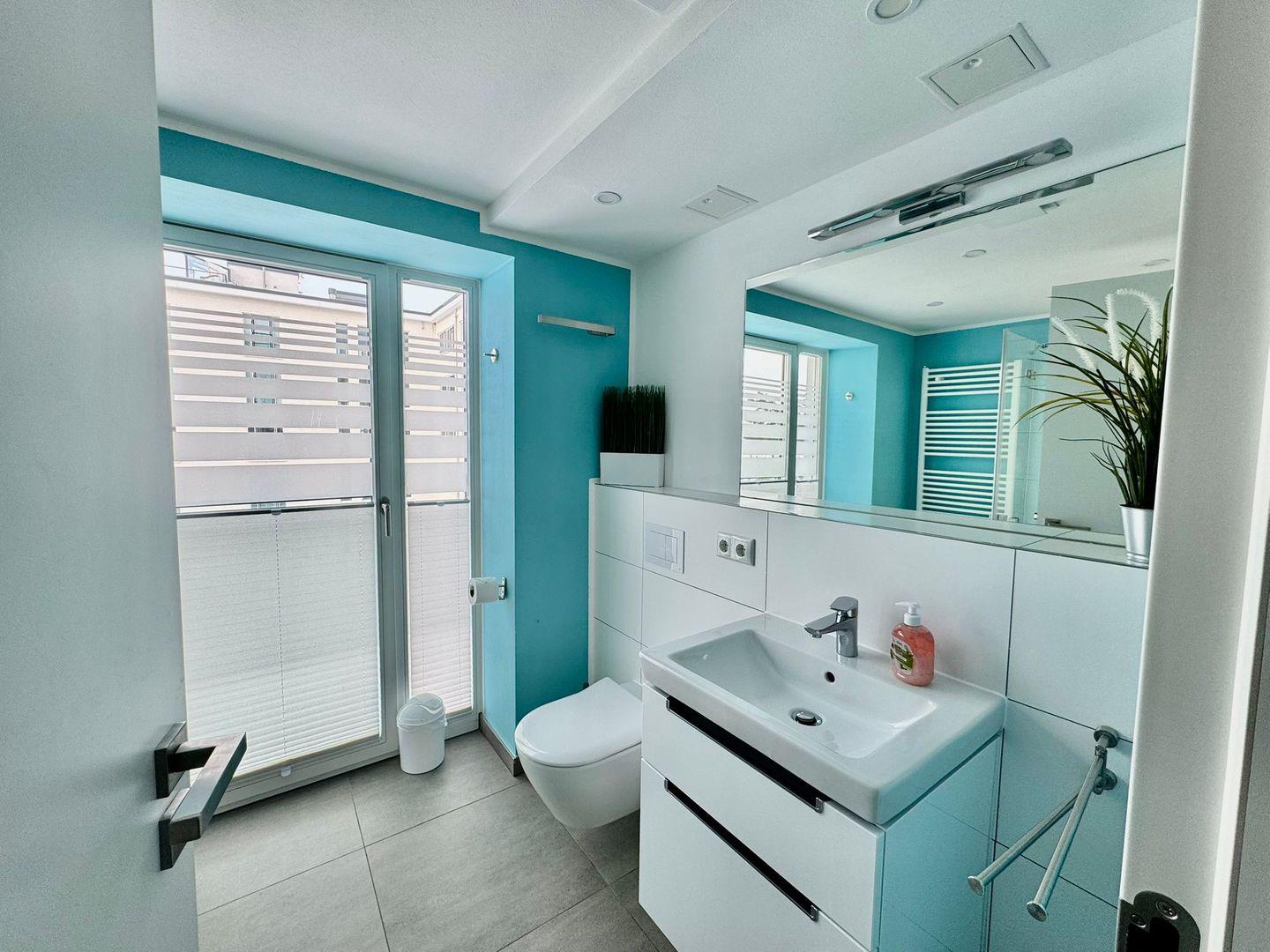 - 2 Badezimmer: Regendusche, WC, Haartrockner