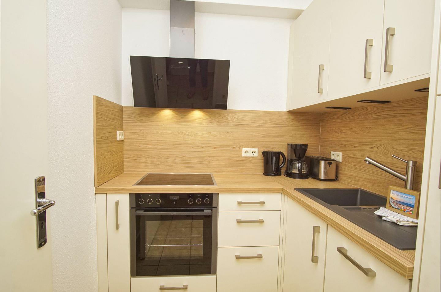 KÜCHE // separate Küche, Ceranfeld, Backofen, Kühlschrank mit Gefrierfach, Toaster, Wasserkocher, Kaffeemaschine, Spülmaschine, reichlich Besteck, Geschirr und Küchenutensilien ++