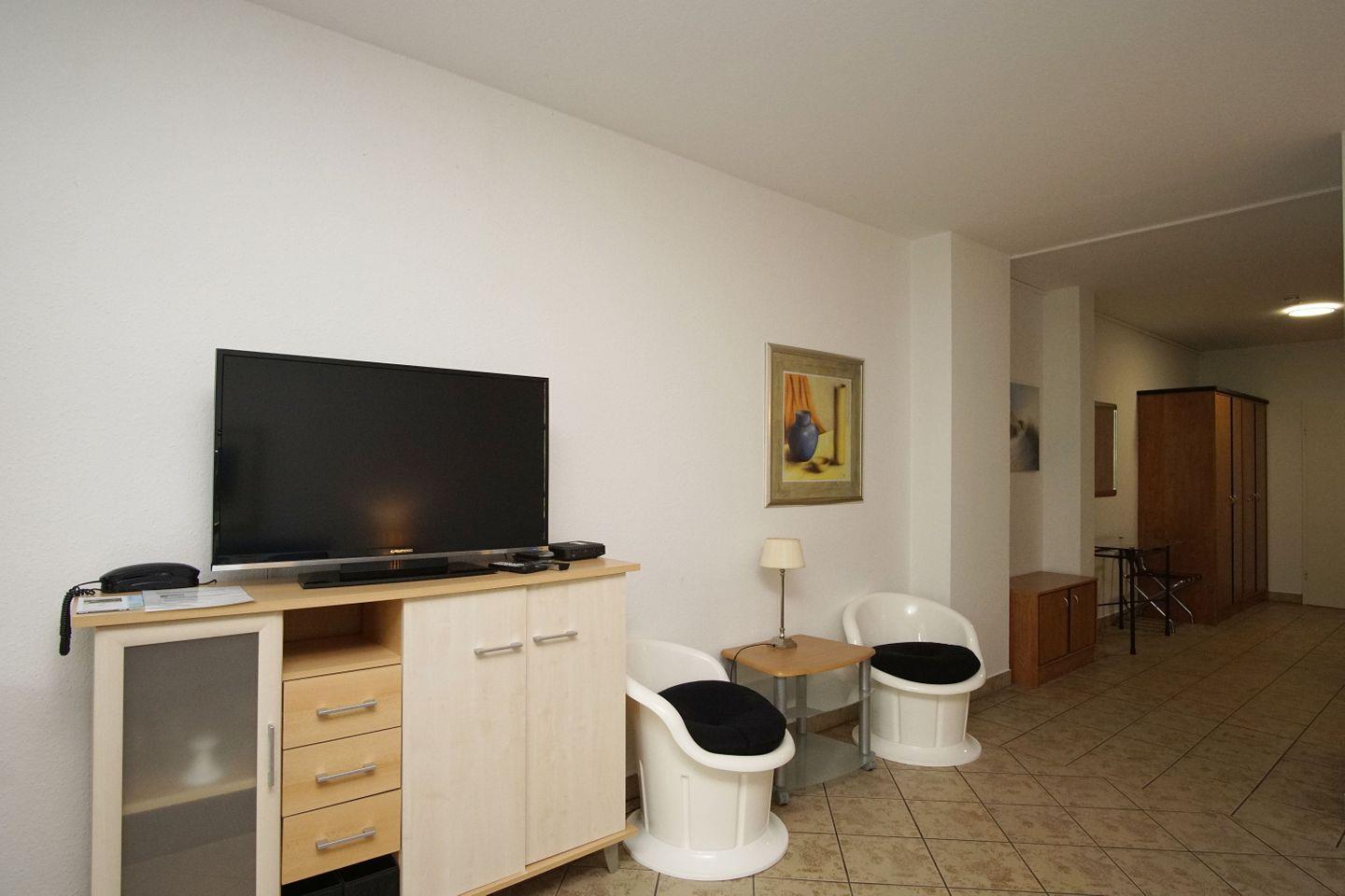 WOHNEN // Wohnraum mit Essbereich, Sitzgarnitur mit bequemer Schlafcouch, Kabel-TV ++