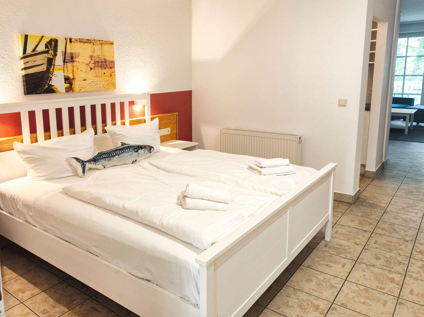 SCHLAFEN // ein Schlafzimmer mit bequemem Doppelbett, bequeme Schlafcouch im Wohnbereich (s.o.) ++