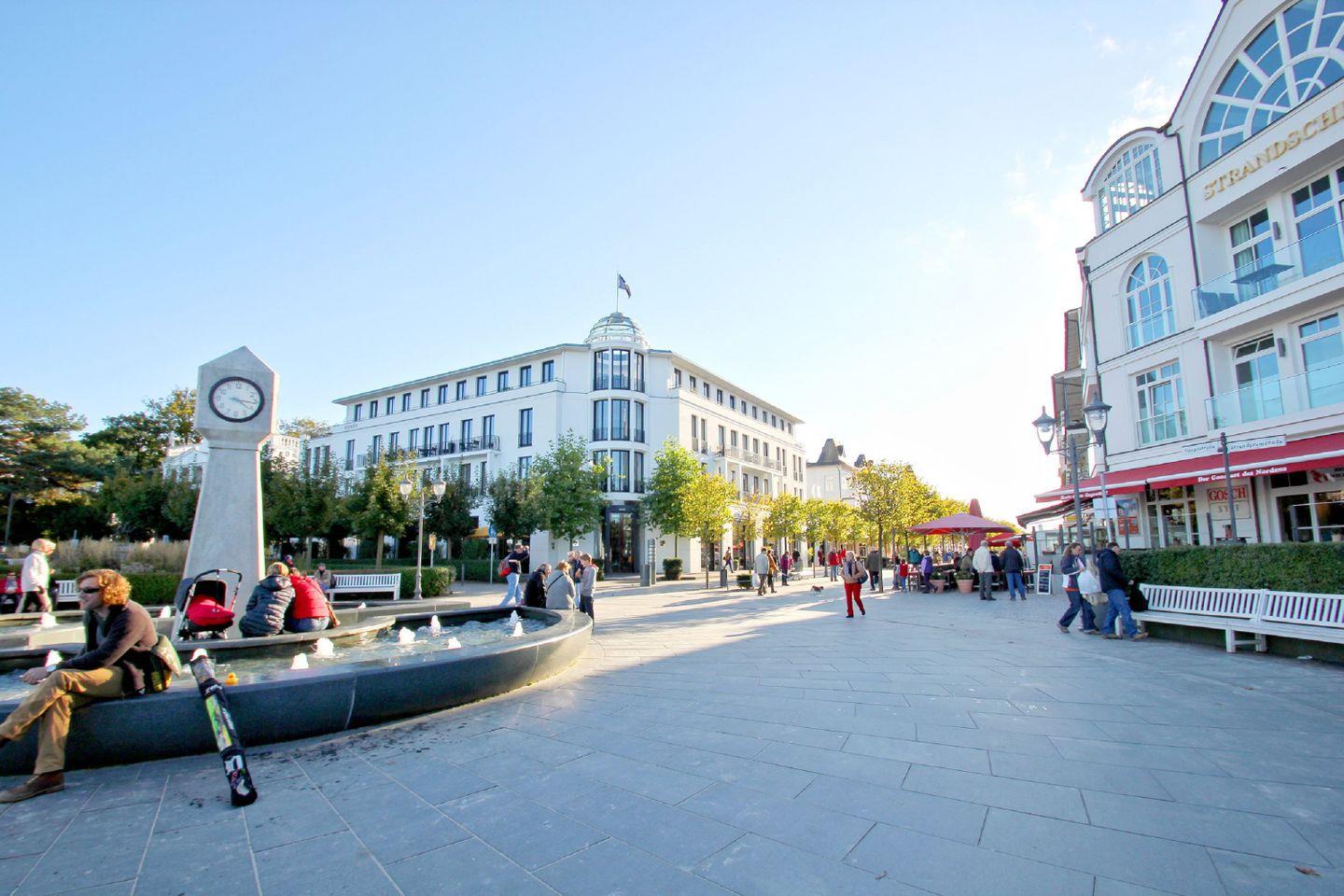Von der Villa sind es nur wenige Minuten bis zum Ostseestrand. Der feinsandige Badestrand und gemütliche Strandkörbe schmücken die Strandpromenade. Zahlreiche Geschäfte, Cafés und Restaurants sind im Ortskern des Ostseebades zu finden.