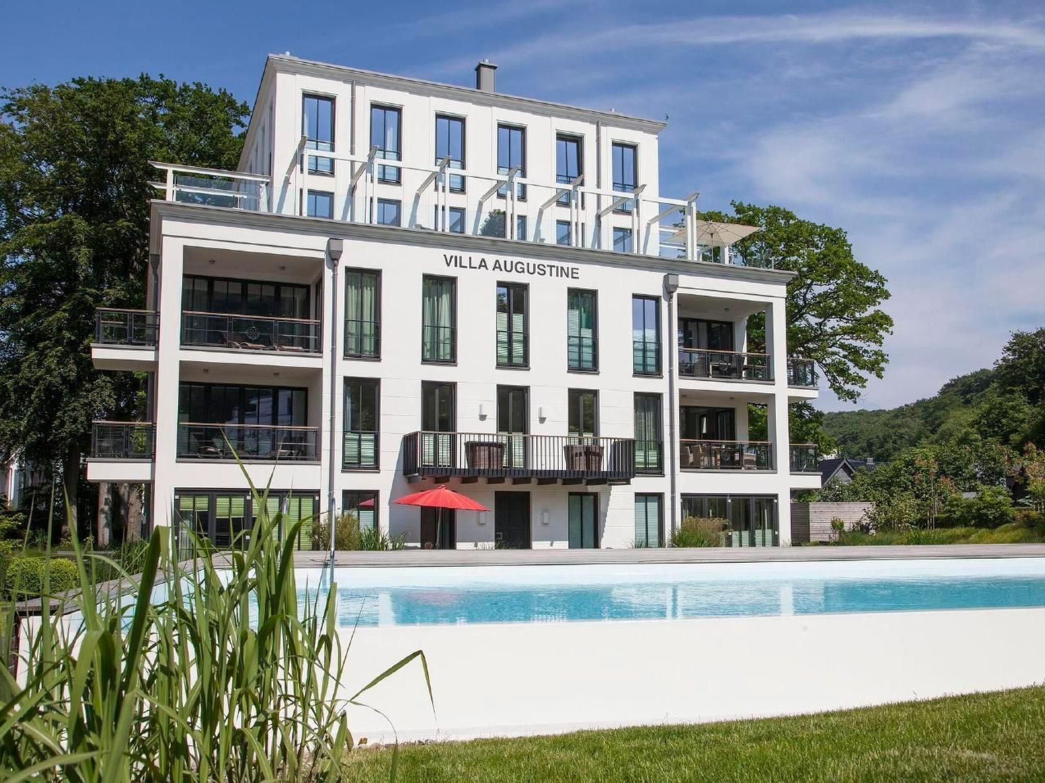 Villa "Augustine" is one of three newly built luxury villas in Heinrich-Heine Park in the heart of the Baltic seaside resort of Binz. Three modern villas have been built on a green area of around 6,000 square metres and are already known for their pure relaxation. With their own heated swimming pool and private underground car park, the complete feel-good holiday is pre-programmed.