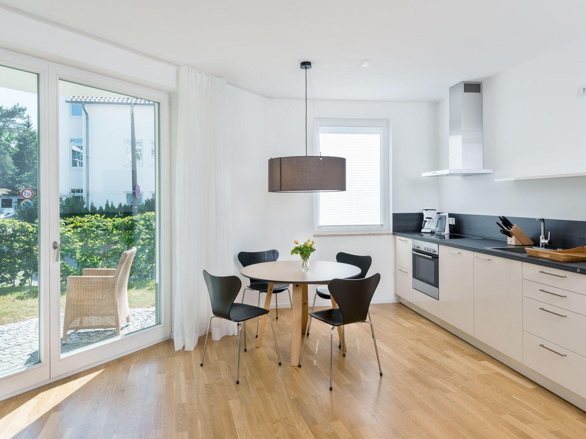 From the living room you can access the terrace with beautiful garden furniture and the garden with a side view of the Baltic Sea. From the private garden and the flat, guests have direct access to the beach promenade and the beach.
