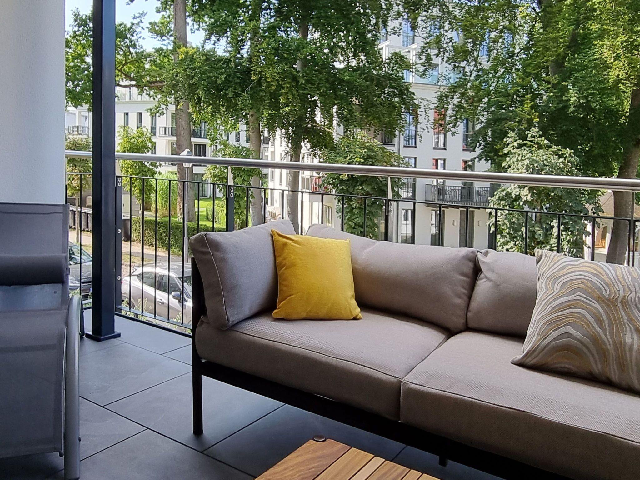 The outdoor area impresses with a spacious 11 m² loggia furnished with comfortable lounge furniture - the perfect place to look out to the sea in peace and quiet and unwind. The proximity to the beach, just 200 metres away, invites you to take spontaneous walks by the sea. The flat also has a bio sauna for up to 4 people, where you can find complete relaxation. For your convenience, a reserved parking space is available in the underground car park, and there are special spaces for storing bicycles and for your handcart or pram.