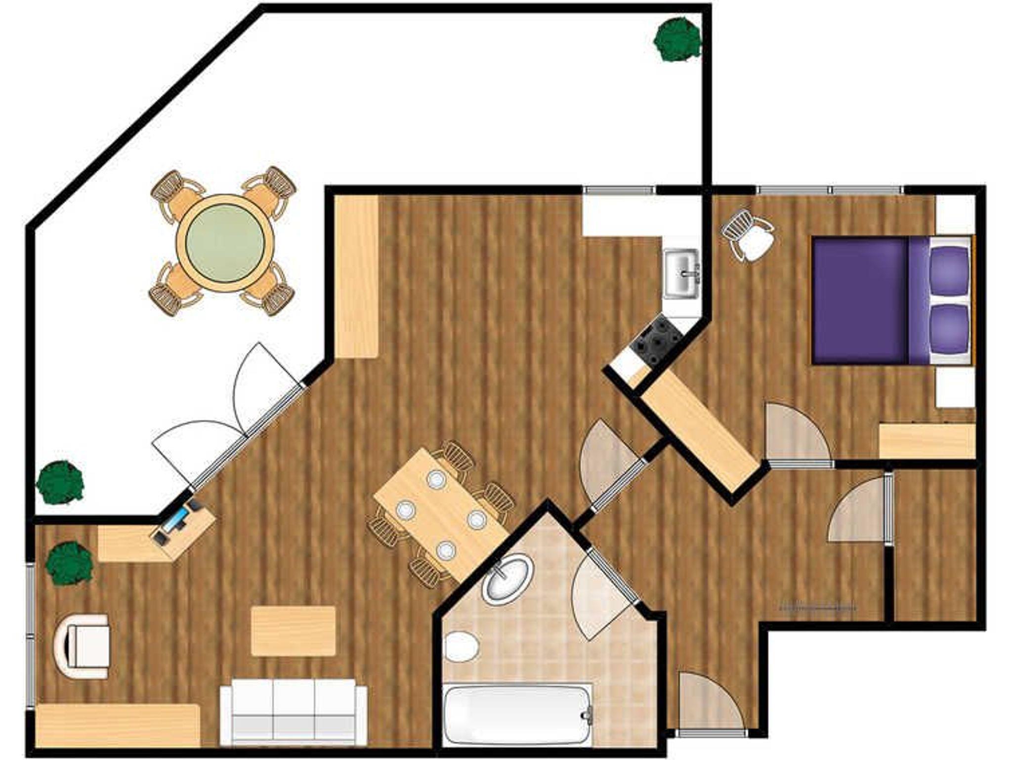 1 Schlafzimmer bzw. Wohn- und Schlafzimmer getrennt,