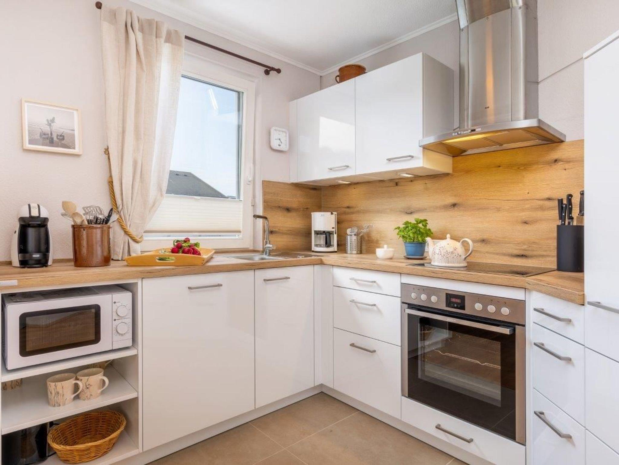 Küche mit Cerankochfeld, Mikrowelle und Geschirrspüler,