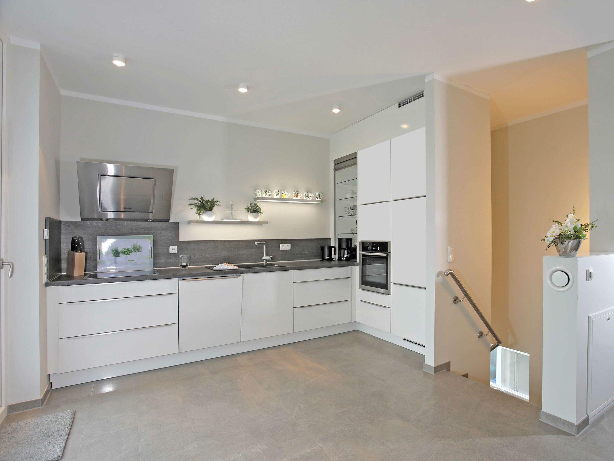 Eine komplett ausgestattete, moderne Küchenzeile mit Induktionsherd, Geschirrspüler, Kühlschrank, zwei Gefrierfächern, Backofen, Mikrowelle, Kaffeefiltermaschine, Wasserkocher, Toaster, Eierkocher und diversem Kleininventar wurde harmonisch in den Wohn-Essbereich integriert und lässt das Herz eines jeden Hobbykochs höher schlagen.