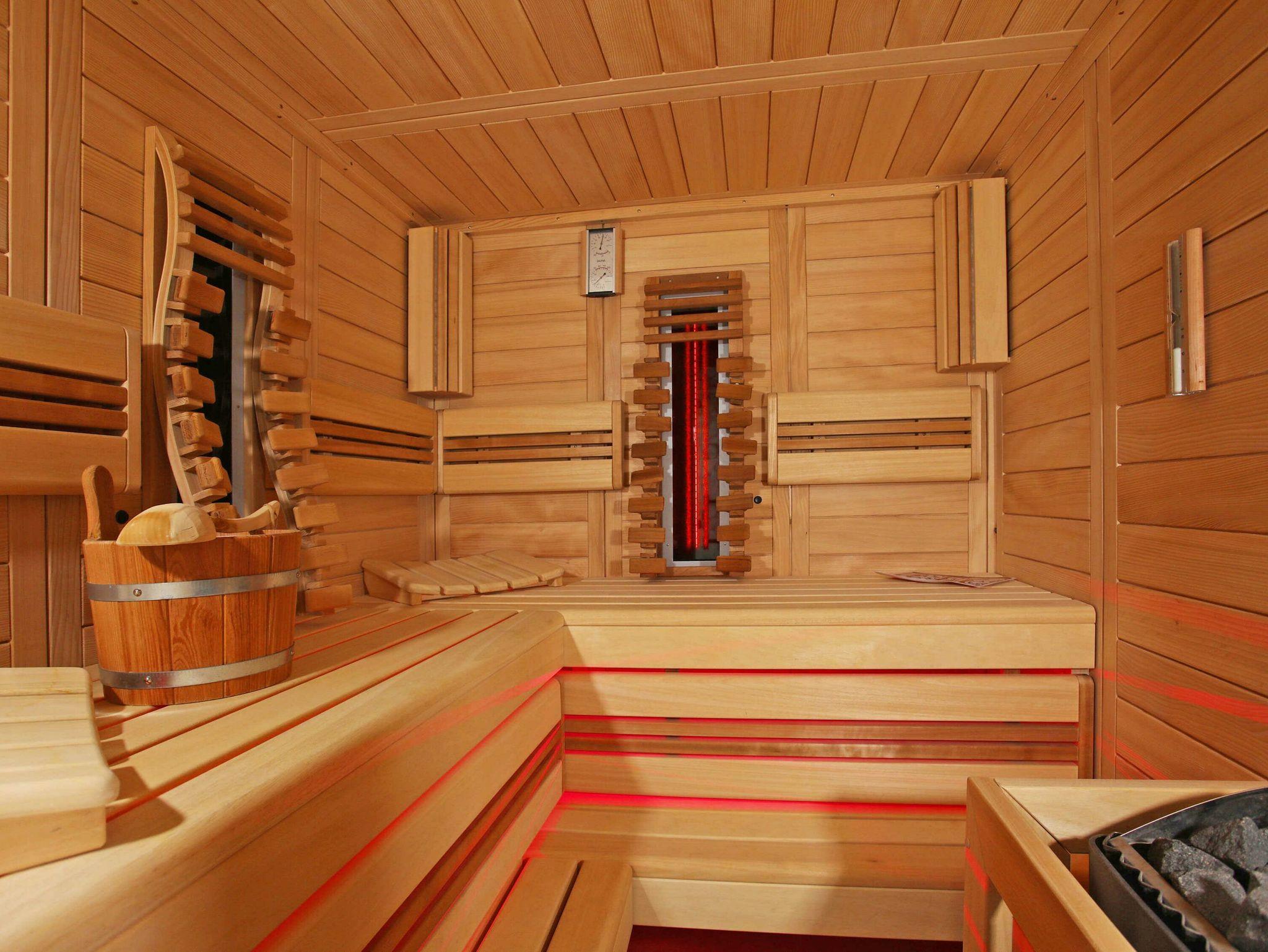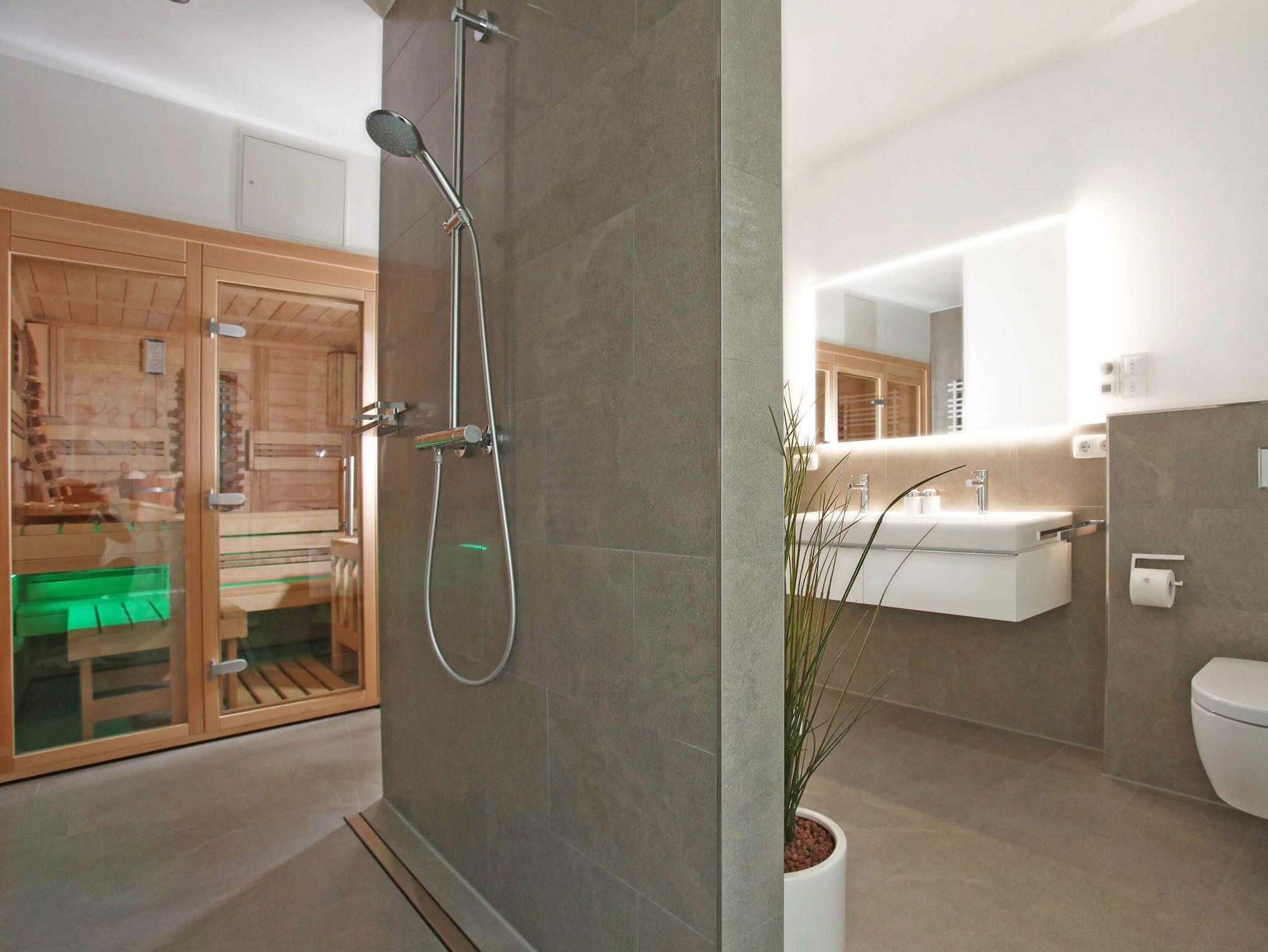 Weiterhin stehen Ihnen auf dieser Ebene zwei Bäder mit ebenerdiger Dusche zur Verfügung sowie eine Sauna, die zusätzlich als Infrarotkabine genutzt werden kann. Ein Föhn und eine Waschmaschine gehören selbstverständlich auch zu der gehobenen Ausstattung der Villa.