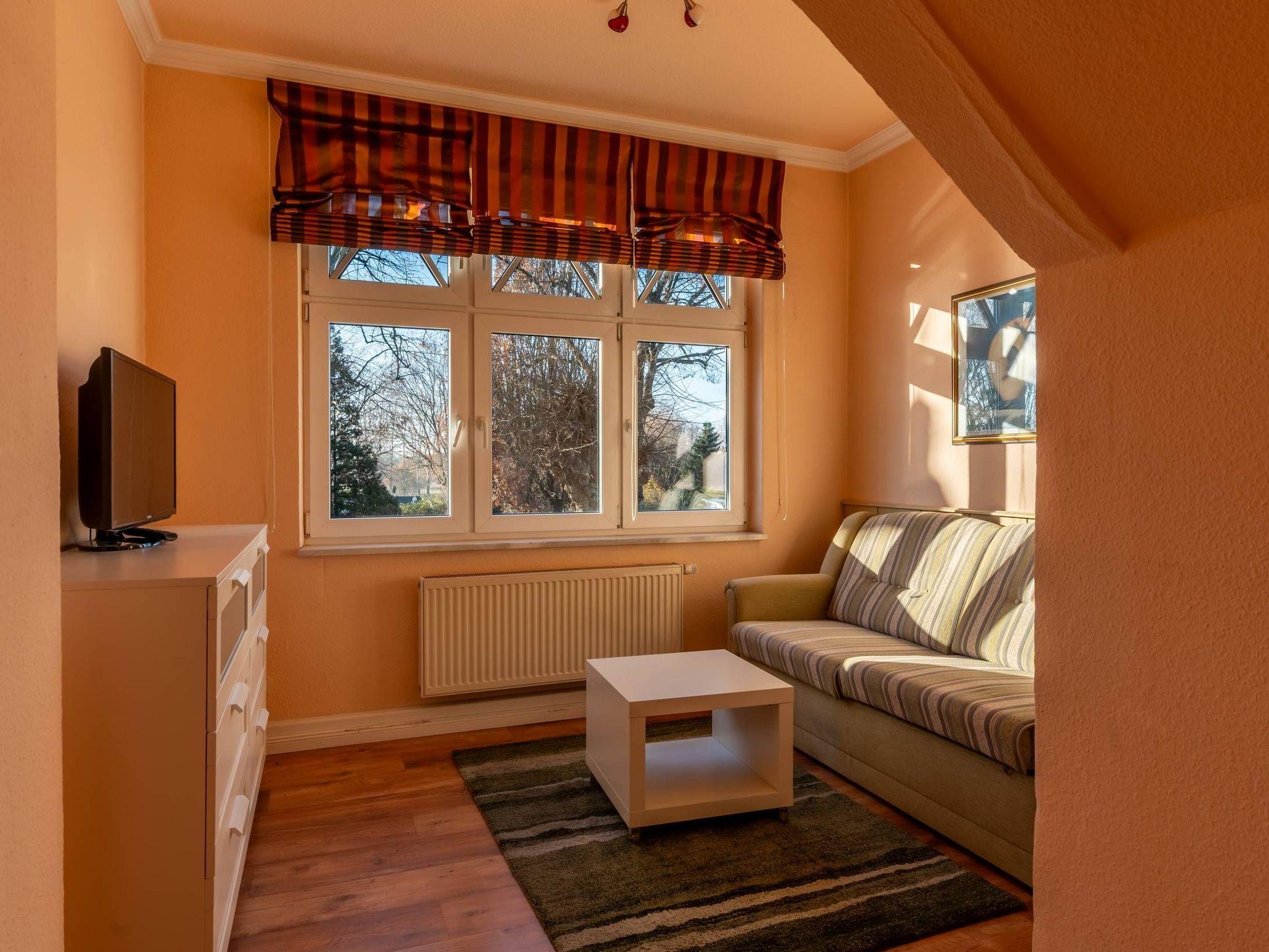 Die Ferienwohnung Poseidon in der Villa Venske in Binz bietet auf 70 Quadratmetern ein komfortables Zuhause in einem rustikal-mediterranen Stil. Direkt gegenüber dem Kleinbahnhof gelegen, eignet sich diese charmante Unterkunft ideal für einen entspannten Aufenthalt auf der Insel Rügen. Mit einem großzügigen Wohnbereich, einem Schlafzimmer mit Doppelbett und einem weiteren Schlafzimmer mit einer Schlafcouch, bietet sie Platz für bis zu vier Personen. Babyreisebett und Hochstuhl können bei Bedarf für jeweils 10,00 pro Woche gemietet werden, so dass ein Baby als 5. Person hinzu gebucht werden kann.