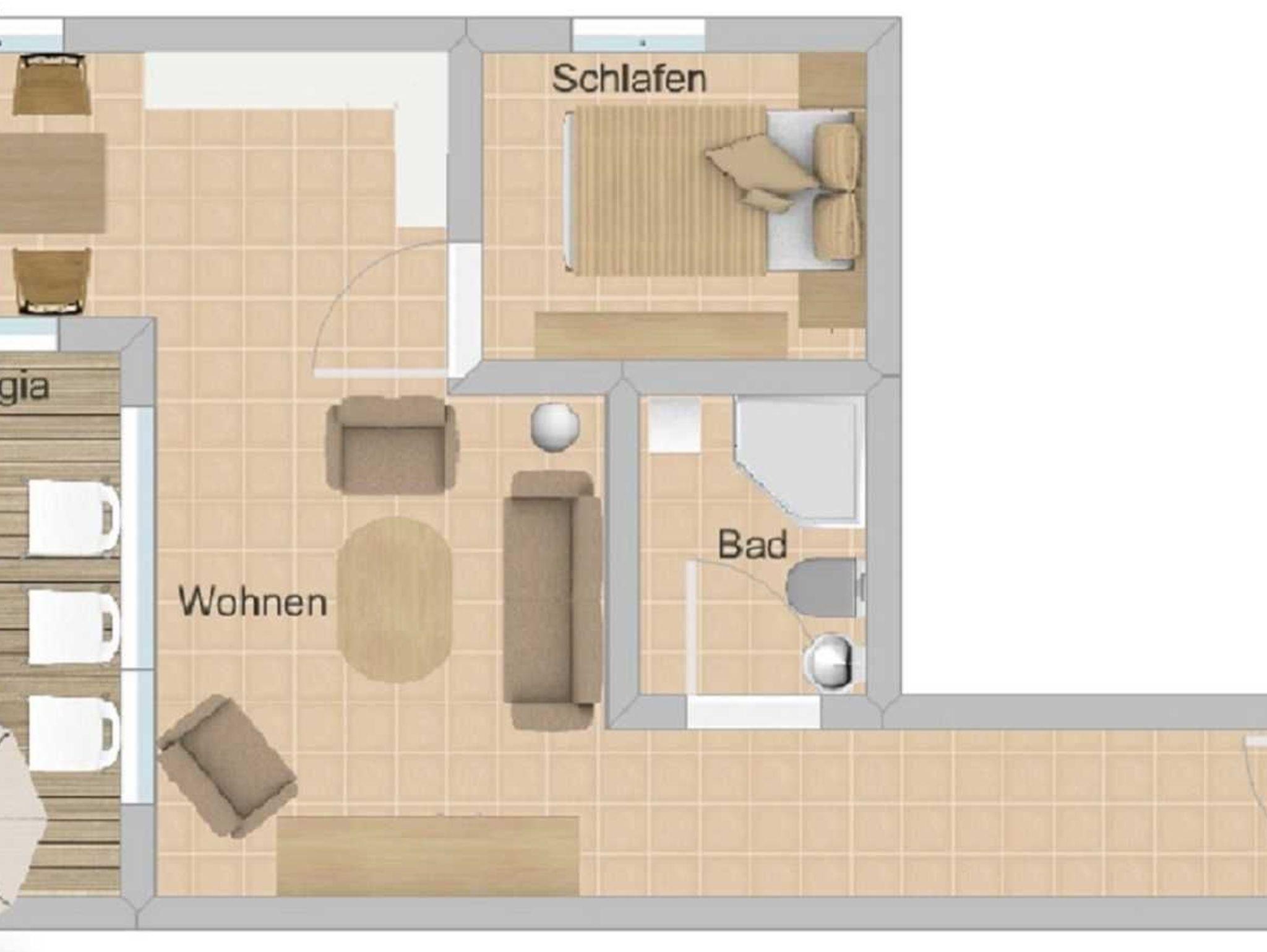 • Bad: Dusche, Waschbecken, Toilette,Schrank
