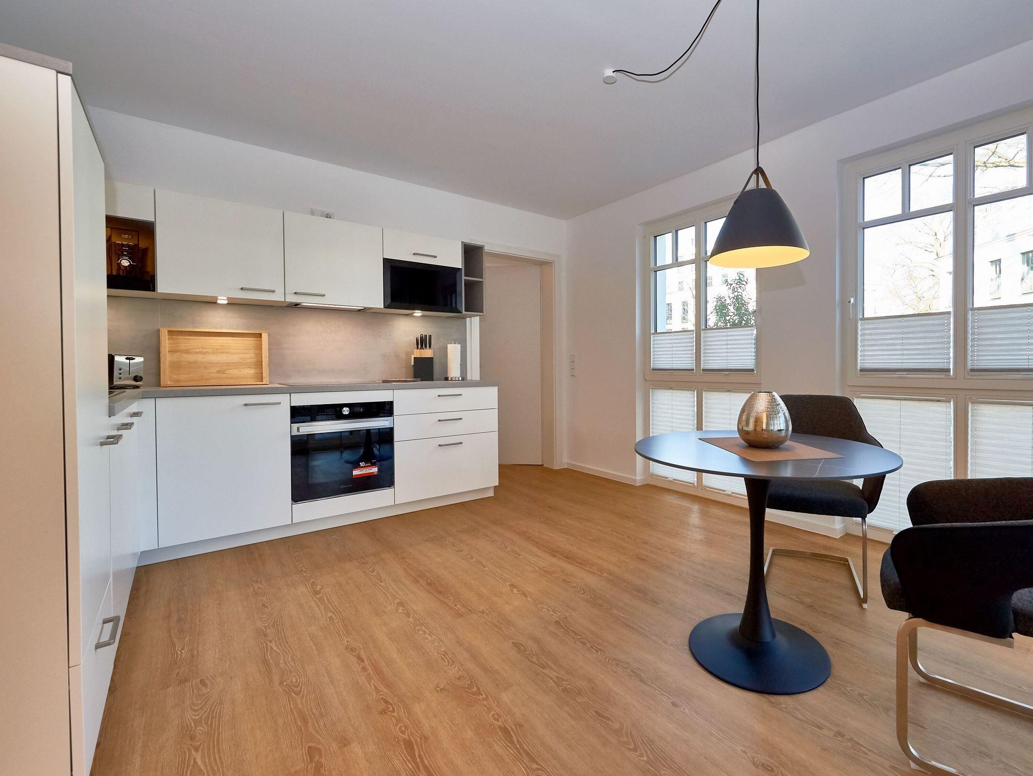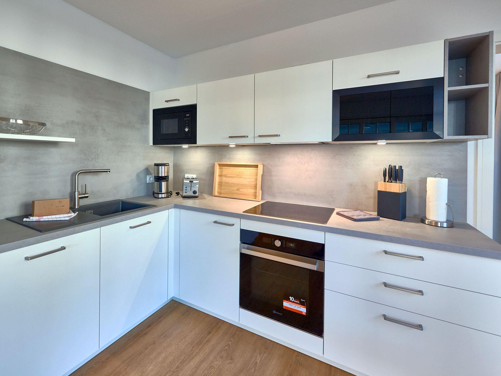 In der eleganten Designerküche steht Ihnen alles zur Verfügung, damit Sie Ihren Kochkünsten freien Lauf lassen können: ein großer Herd inklusive Backofen und Abzugshaube, eine Mikrowelle, ein Kühlschrank mit Gefrierfach, eine Spülmaschine, eine Kaffeemaschine, ein Wasserkocher, ein Toaster. Selbstverständlich mangelt es auch nicht am nötigen Koch- und Essgeschirr. Im wenige Gehminuten entfernten Ortszentrum finden Sie Bäcker und einen Edeka-Einkaufsmarkt. Und natürlich freuen sich auch die hiesigen Restaurants, Cafés und Bars immer über einen Besuch.