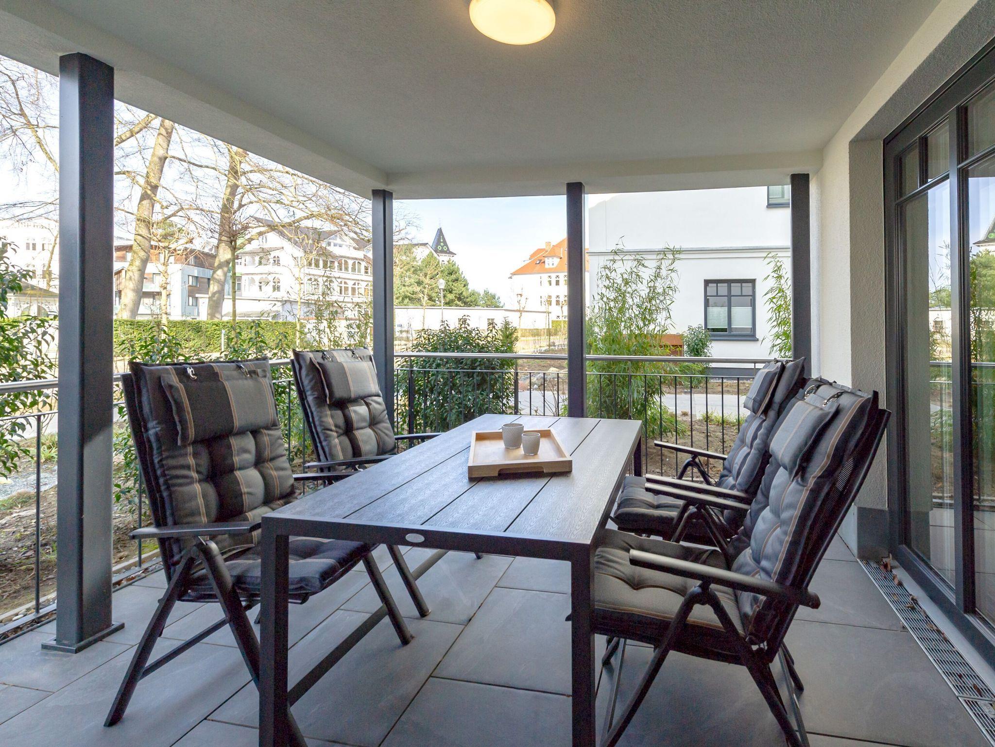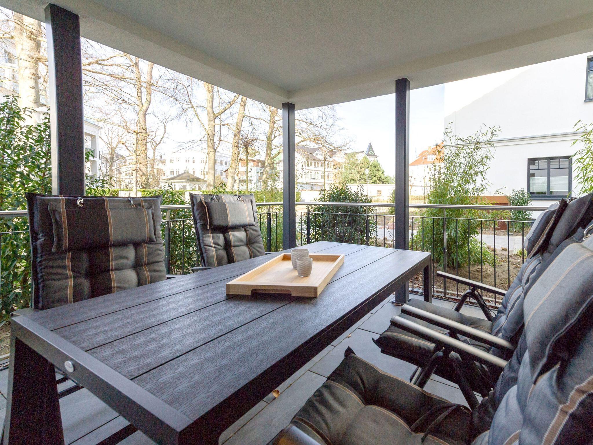 Die Wohnung 01 erwartet Sie im Erdgeschoss der Villa Beatrice. Mit stolzen 94 qm Wohnfläche, zwei getrennten Schlafzimmern - jeweils mit Bad en suite - und einer möblierten Terrasse ist dieser durch und durch gestylte Urlaubstraum in bester Lage zum herrlichen Binzer Strand für bis zu 4 Personen nebst gut erzogenem Vierbeiner buchbar.
