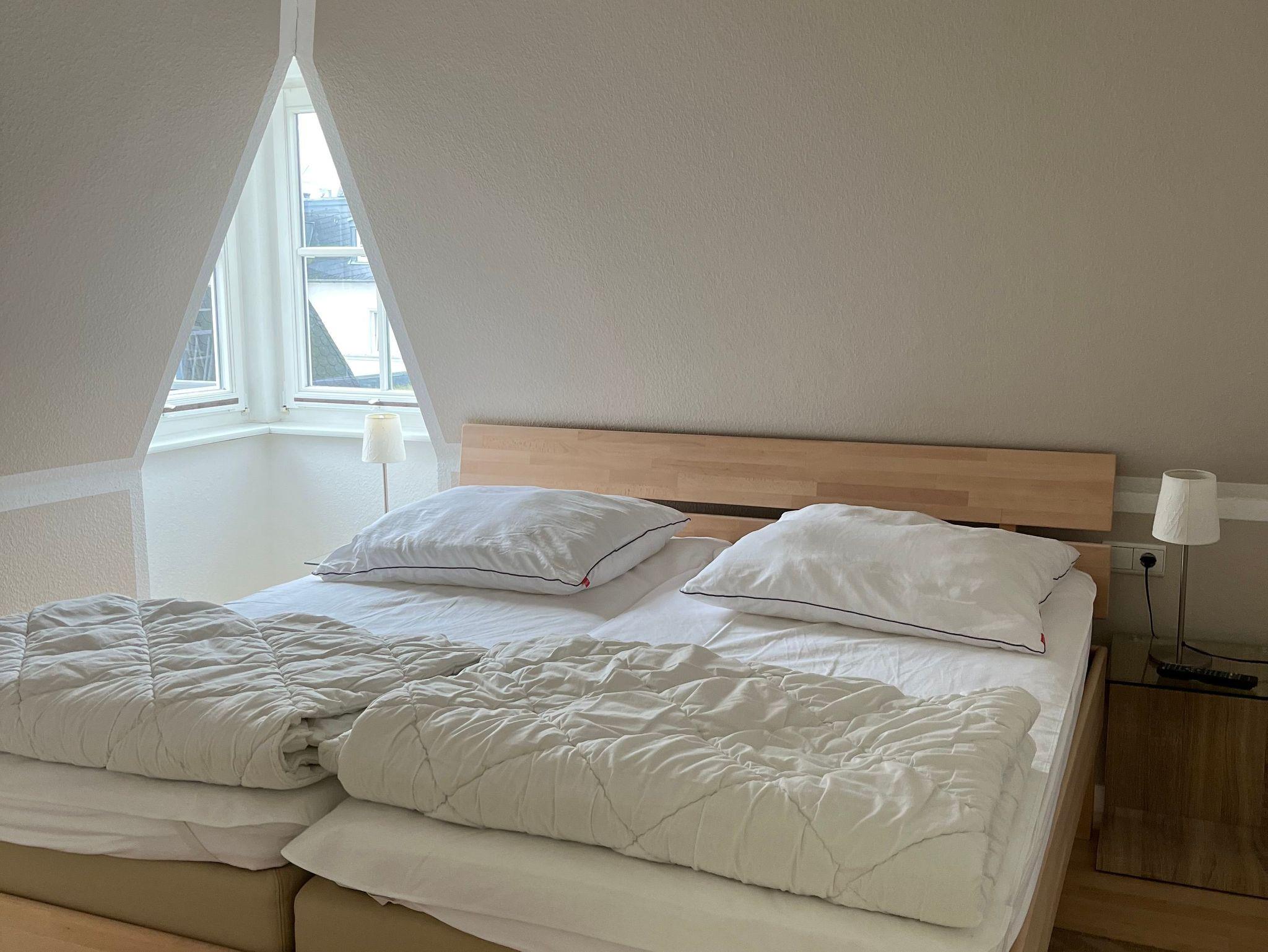 Sehr schöne und helle Zweiraumwohnung im Dachgeschoss mit großem Wohnzimmer und integrierter, offener Küchenzeile, einem Eßbereich und einer Schlafcouch, 2 Flügeltüren ( kein Balkon) können im Wohnzimmer geöffnet werden. Das Schlafzimmer verfügt über ein Doppelbett (2x90x200) und zusätzlichem TV ,das Badezimmer ist mit DU/WC ausgestattet.
