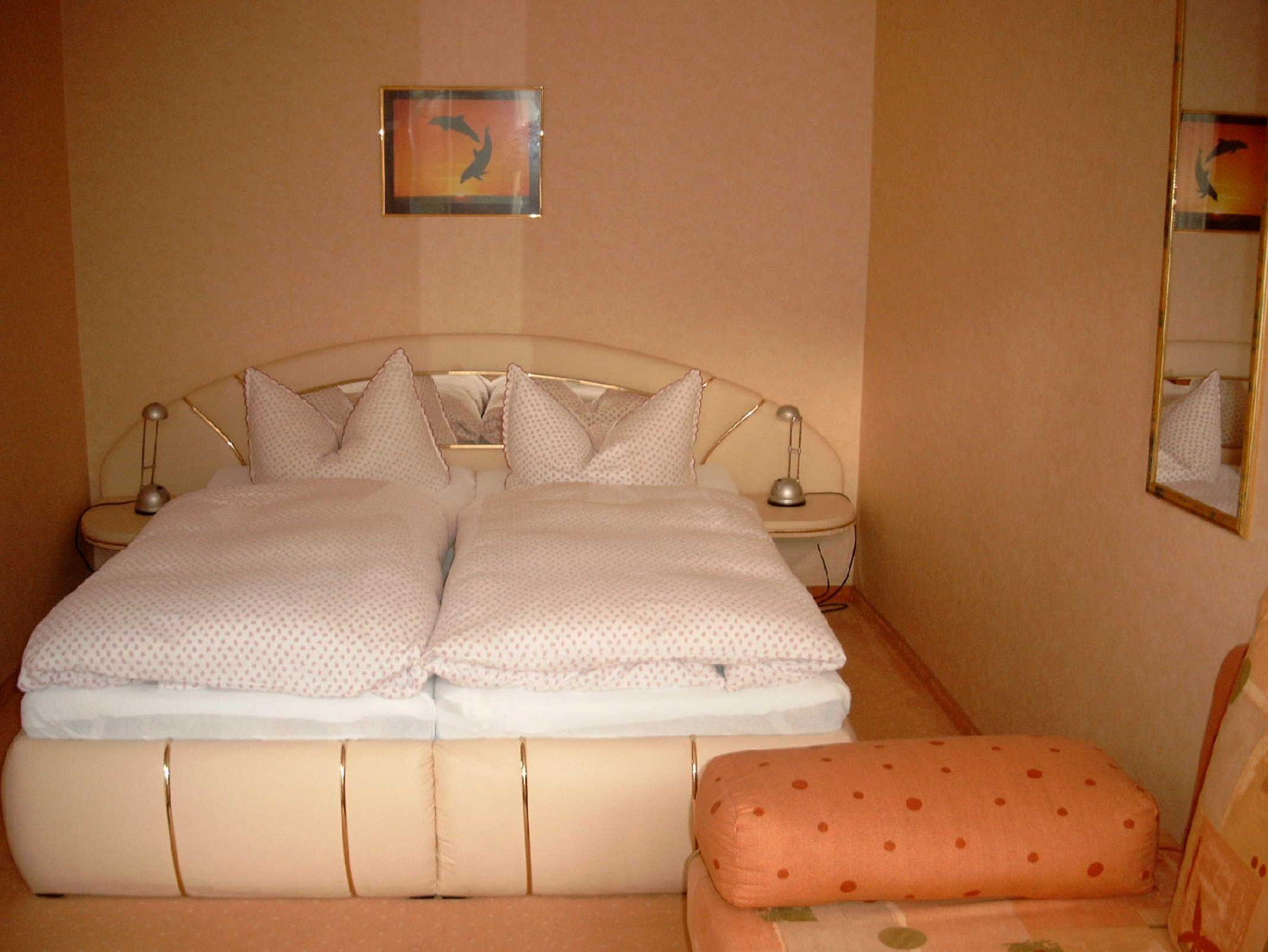 Unsere Ferienwohnungen, geeignet für 2 bis 3 Personen, sind hell, freundlich und mit viel Liebe zum Detail eingerichtet. Der Wohnraum mit integriertem Küchenbereich ist ausgestattet mit einer Sitzgarnitur zum Fernsehen (Kabel-TV) und Entspannen sowie einem Esstisch mit Stühlen zum bequemen Einnehmen der Mahlzeiten. Ein Radio mit CD-Player vervollständigt die Ausstattung. Die komplett eingerichtete Küchenzeile mit 2-Platten-Herd, Mikrowelle, Kaffeemaschine, Wasserkocher sowie Toaster und entsprechendem Geschirr und Besteck bietet auch im Urlaub gewohnten Komfort. Das Schlafzimmer ist eingerichtet mit einem grossen französischen Bett , mittig getrennt , mit verstellbarem Kopf- und Fussteil und einer Studioliege als Aufbett sowie einem geräumigen Schrank mit Ganzkörperspiegel.