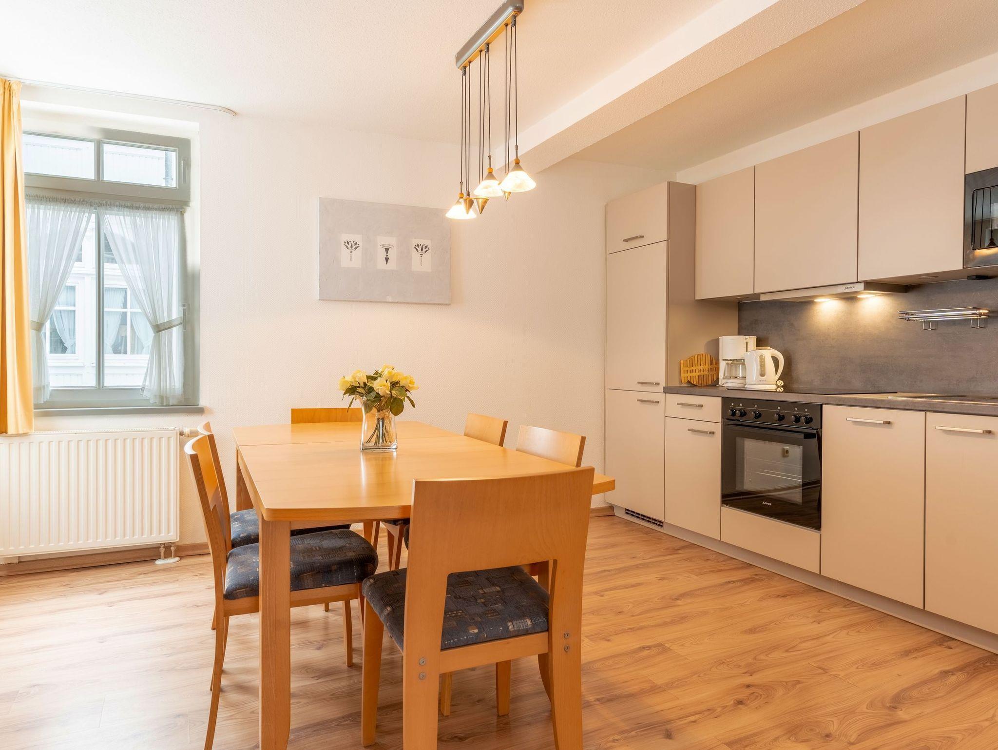 Unser 2- Raum Apartment bietet auf 59 qm Platz für bis zu 4 Personen. Im Wohn/Essbereich ist eine umfangreich ausgestattete Küchenzeile sowie der Essbereich integriert.
