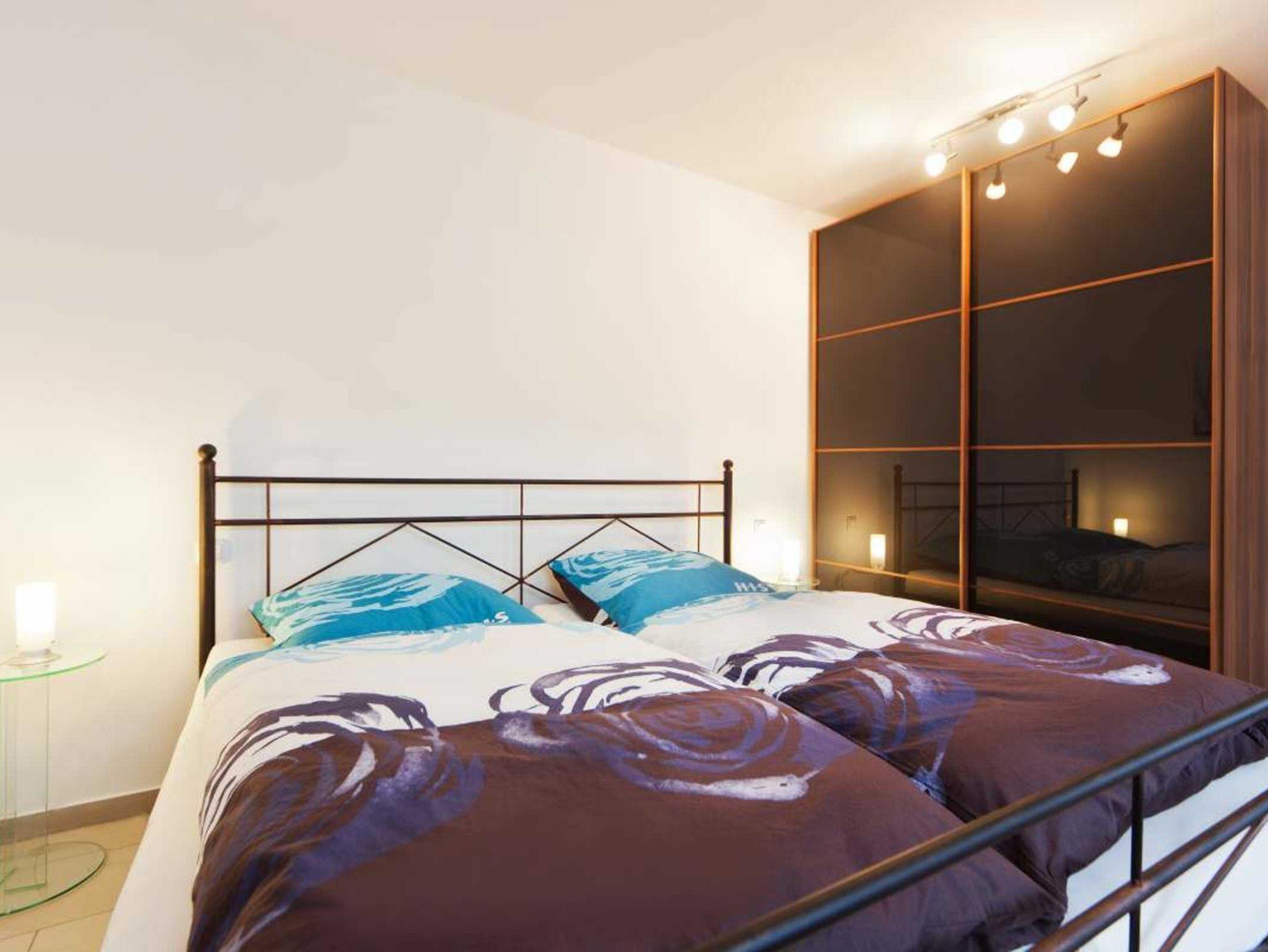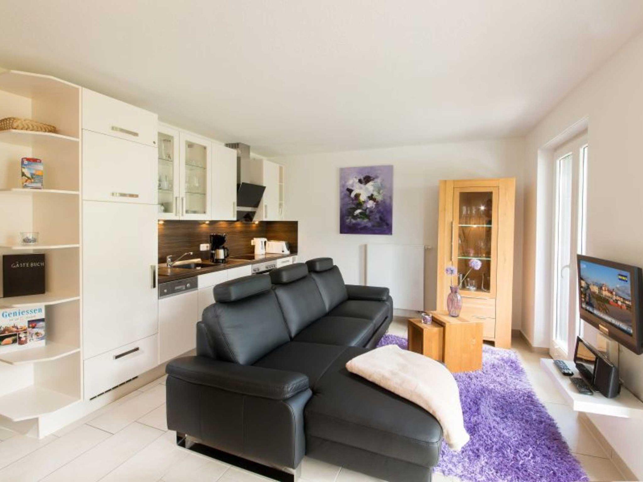 Die Wohnung ist komfortabel und modern mit allen Gegenständen des täglichen Lebens ausgestattet. Sie hat 2 große, voneinander getrennt liegende Schlafzimmer mit Doppelbetten; die Betten sind jeweils 200 x 100 cm groß. Im Schlafzimmer 1 befindet sich ein Loewe-Flachbildschim neuester Generation. Die Couchgarnitur im Wohnbereich besitzt eine Bettfunktion und kann auf eine Liegefläche von 210 x 120 cm erweitert werden. Die Wohnung ist dadurch bequem mit bis zu 5 Personen belegbar. Sie können sie über einen Fahrstuhl erreichen. Der Wohn-/Essbereich ist mit einer offenen Küche ausgestattet. Kühlschrank mit Gefrierfach, Backofen mit Grillfunktion, Spülmaschine, 4-Platten Ceran-Kochfeld, Kaffeemaschine, Heisswasserkocher, Mikrowelle, Toaster und Eierkocher sind vorhanden. Im Wohnbereich finden Sie einen Esstisch für 5 Personen, einen LED-Flachbildschirm mit Full-HD-Technologie von TechniSat, eine Audio-Kompakt-Musikanlage mit Radio, iPod und iPhone-Dock und USB-Anschluss, DVD-Player, Blue-Ray-Player sowie einen W-LAN-Internetanschluss. Das Bad ist mit Fön/Haartrockner ausgestattet. Bügelbrett und -eisen ist in der Wohnung vorhanden. Ein Kinderreisebett und ein Kinderhochstuhl sind auf Wunsch buchbar. Der sehr große Süd-Balkon bietet Ihnen genügend Platz für das gemütliche Frühstück und das Glas Wein am Abend. Im Erdgeschoss befindet sich ein großzügiger Saunabereich, den Sie gegen Münzzahlung nutzen können. Ein Münz-Waschautomat und Trockner sind ebenfalls im Haus vorhanden. Zur Wohnung gehört ein wohnungseigener Tiefgaragen-Stellplatz. Ein 2. PKW-Stellplatz kann im Zentrum von Binz mitgebucht werden.