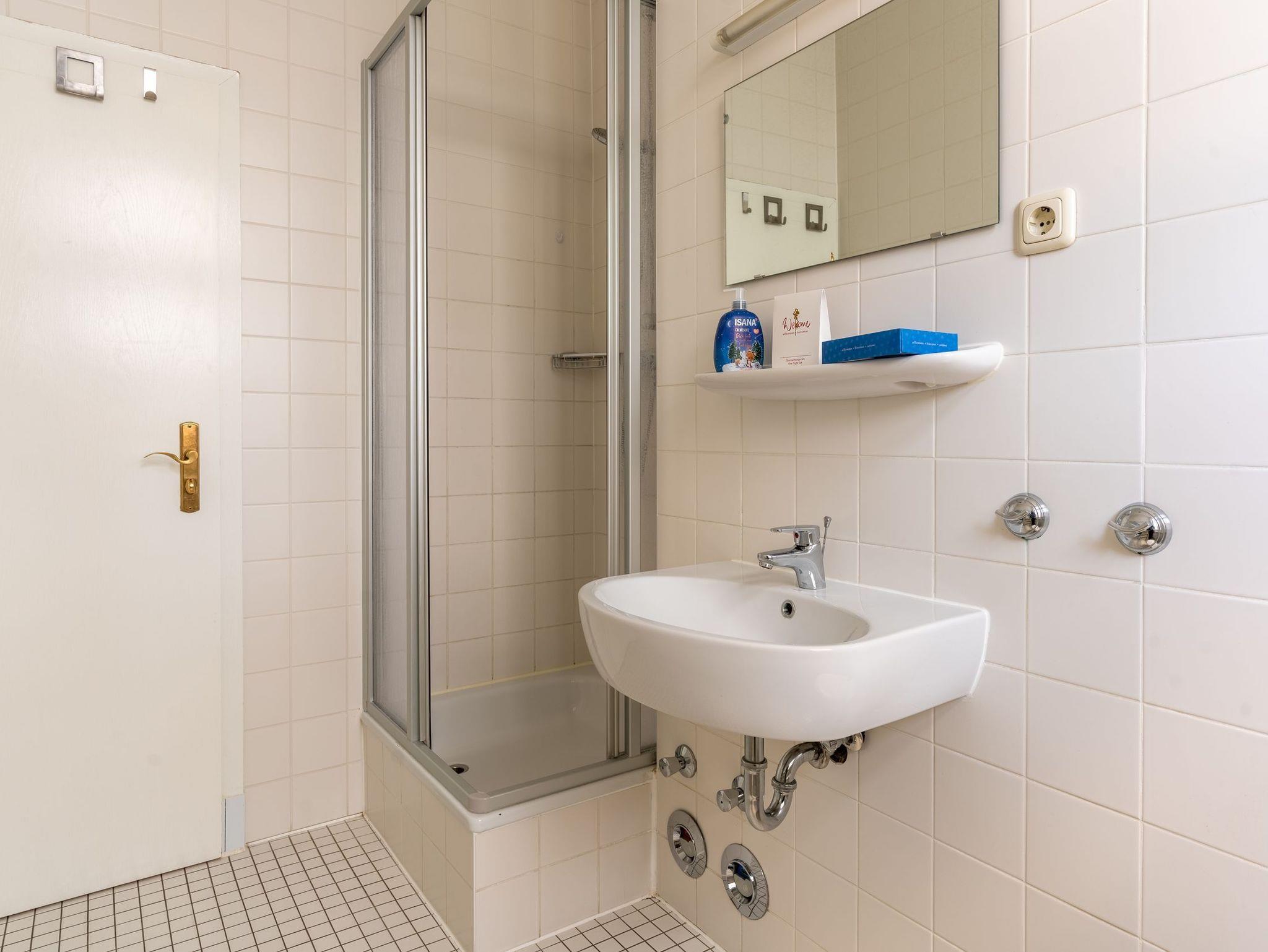 Im Tageslichtbad mit Dusche können Sie sich entspannt frisch machen.