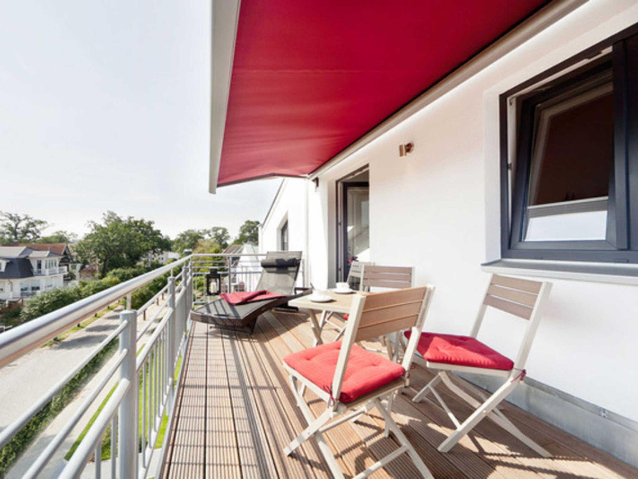 Großzügig möblierter Balkon in Südostlage, elektrische Markise