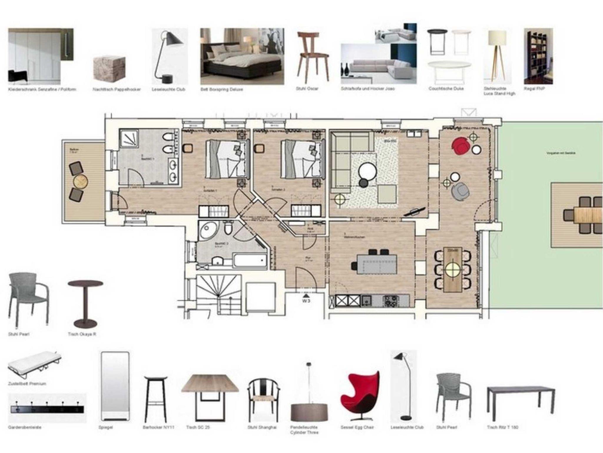 Sehr hochwertige Einrichtung, zusammengestellt von den Einrichtungsplanern der Firma Clic aus dem renommierten Stilwerk in Hamburg (Internet: clic.de), ein großer und nach Süden ausgerichteter Balkon zum rückwärtigen Garten der Villa, ein Abstellraum im Eingangsbereich der Wohnung, kostenloser W-LAN-Zugang, kostenlose Sauna-Nutzung, kostenloser Parkplatz Nr. 19 in der Tiefgarage (Doppelparker: 1,65 Meter hoch, mit einer maximalen Nutzlast von 2.000 kg für eine maximale PKW-Länge von 5 Metern), bitte beachten Sie, ob die Maße ihres PKWs für den Stellplatz geeignet sind. Nutzungsmöglichkeit Waschmaschine und Trockner im Hauswirtschaftsraum (Münzeinwurf).