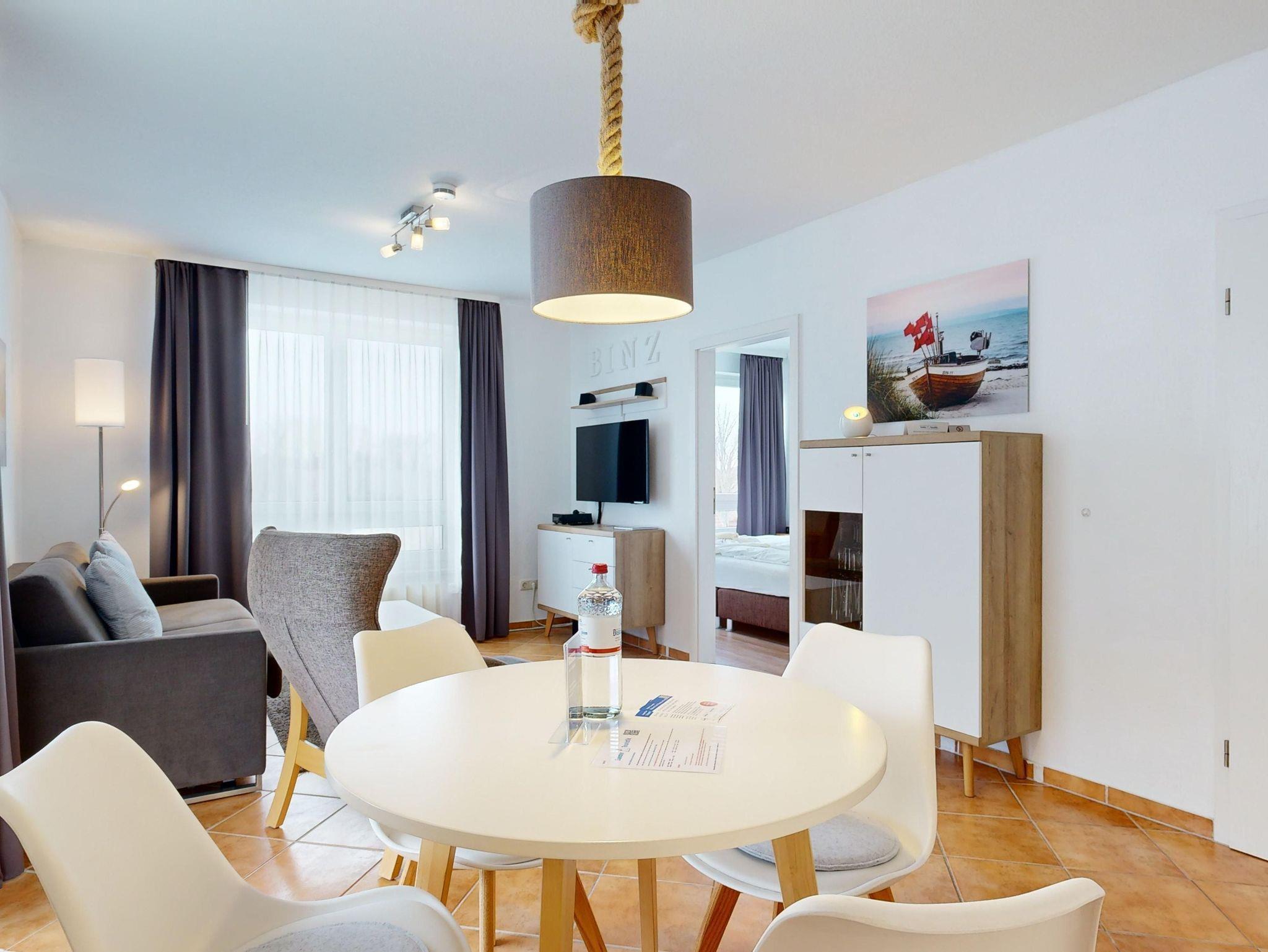Ferienwohnung Binzer Sterne 31 für bis zu 4 Personen im 1. Obergeschoss (2 Zimmer / 45 m²) des Appartementhauses Binzer Sterne, 1 Schlafzimmer, Parkplatz (gegen Gebühr) und freies WLAN.